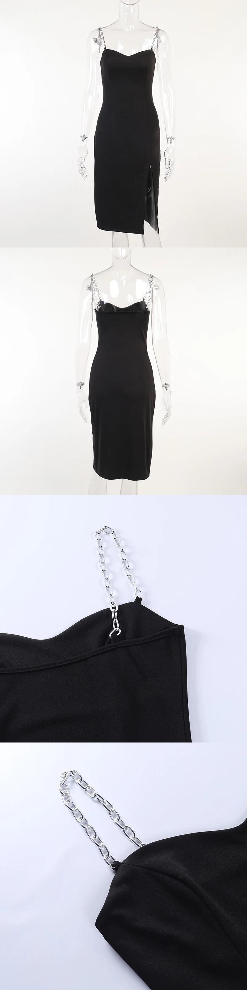 送料無料 夏セクシーなヤングスタイルパーティードレス女性のドレスチェーンストラップレスノースリーブベーシックスプリット膝丈ボディコン 20912 サマー 夏物 AE665656665583962036