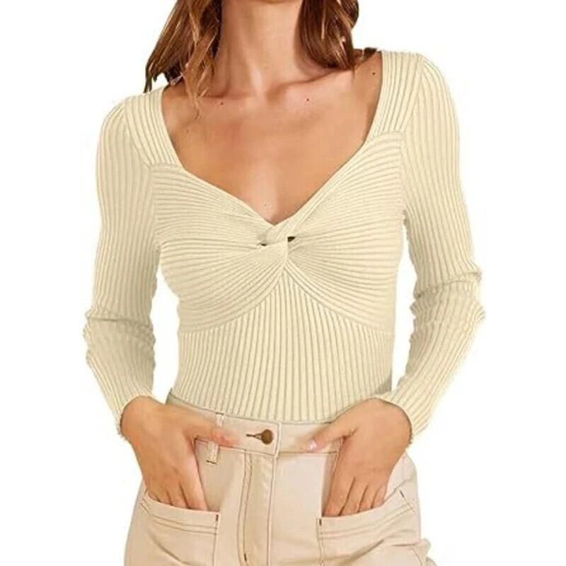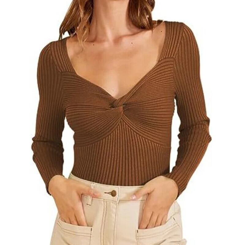 送料無料 秋と冬の女性のセーター無地トップススリムフィット服十字 V ネック長袖プルオーバー 28968 ロング オータム 秋物 ウィンター 冬物 Vネック ソリッドカラー AE665656689636226520