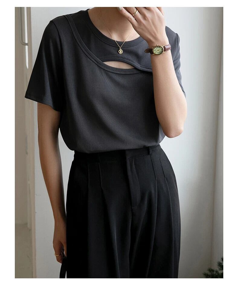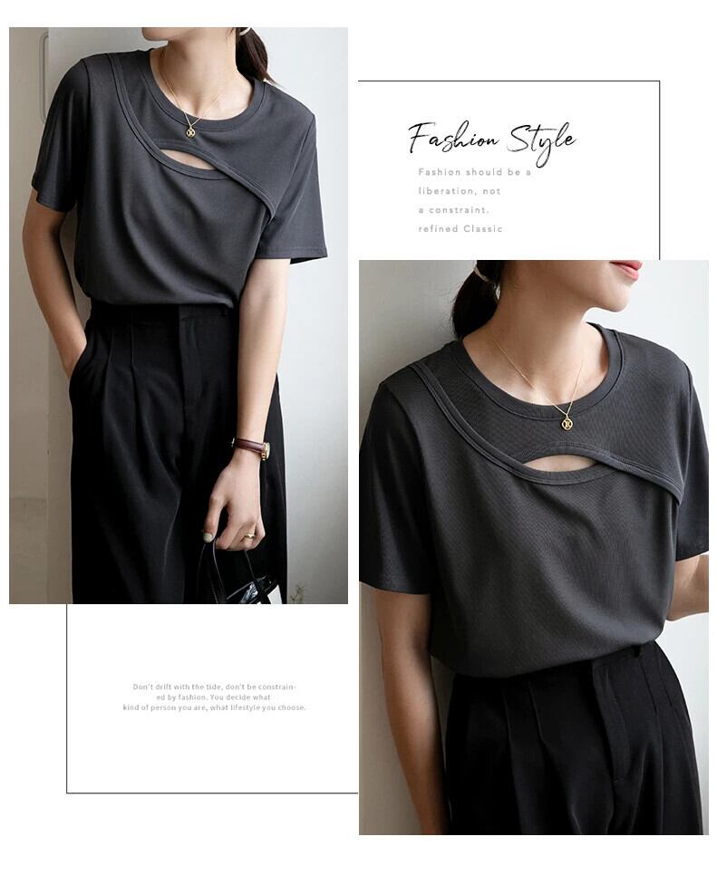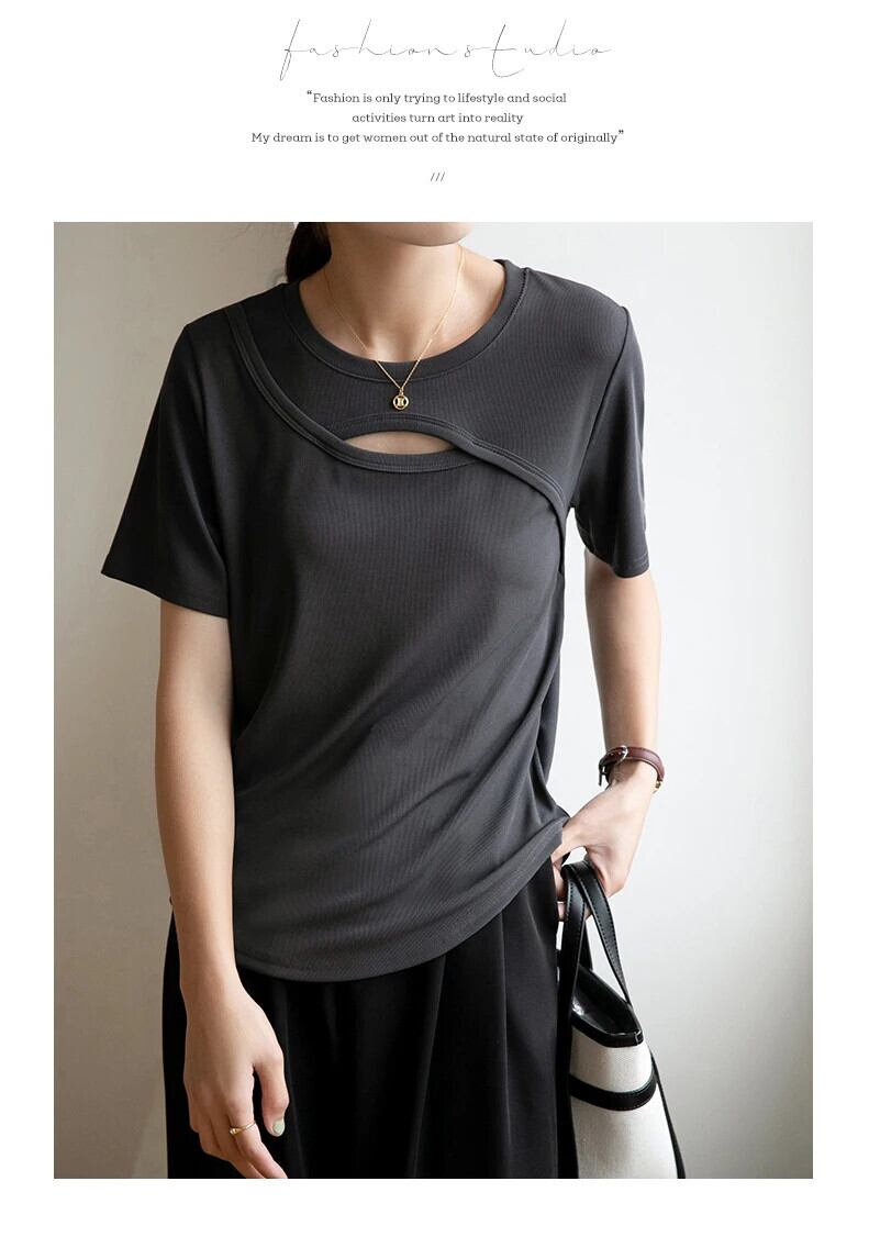 送料無料 夏の女性の中空アウトセクシーな半袖シャツとブラウススタイリッシュな固体 Tシャツ 2023 O ネックトップス 26905 ショート ハーフスリーブ サマー 夏物 Oネック ソリッドカラー AE665656657244814582