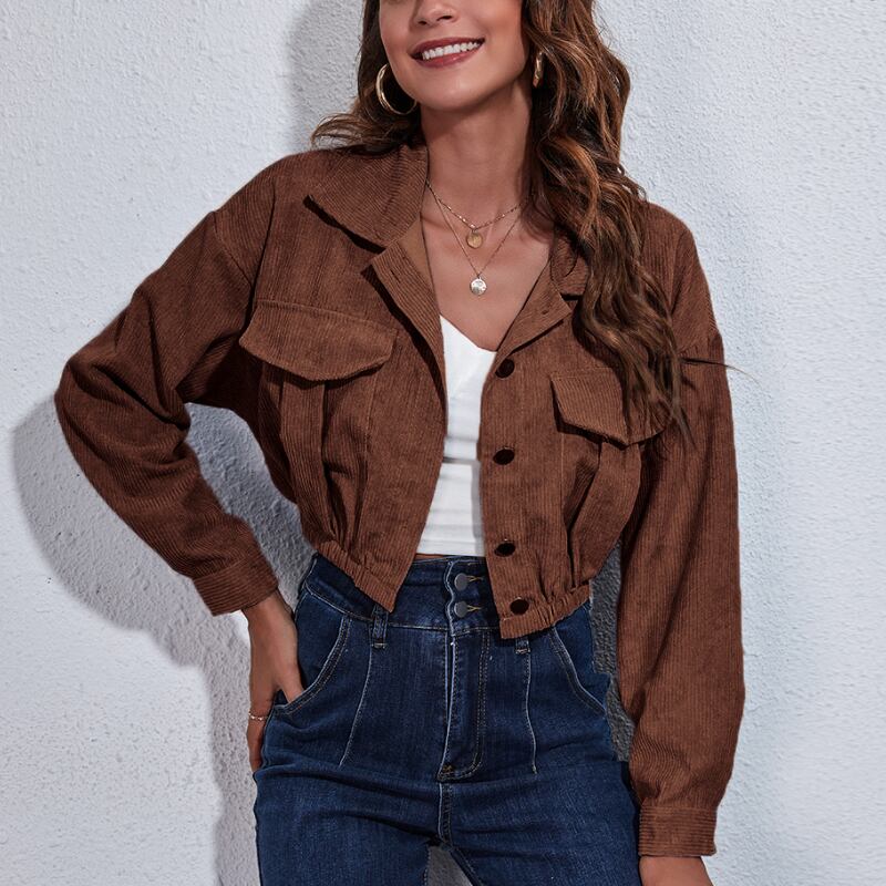 送料無料 秋長袖トップス冬スタンドカラージャケット固体プリーツコーデュロイコート女性 Casaco Feminino 29457 ロング オータム 秋物 ウィンター 冬物 ソリッドカラー AE665656682887257479