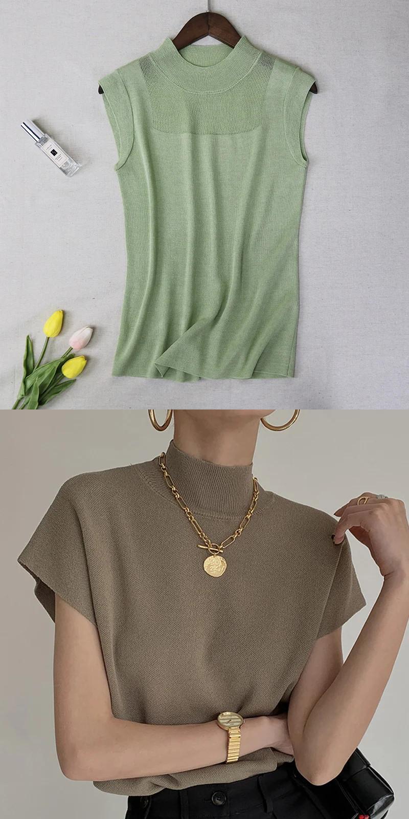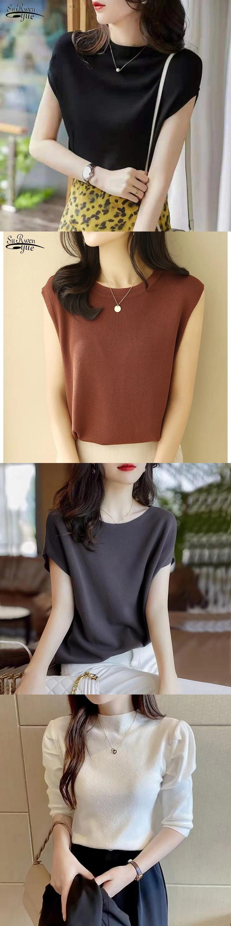 送料無料 2023 女性半袖ニットベストブラウス夏のタンクトップ女性オフィスレディボトミングセーター 24822 サマー 夏物 会社 学校 通勤や通学にも AE665656622406955583