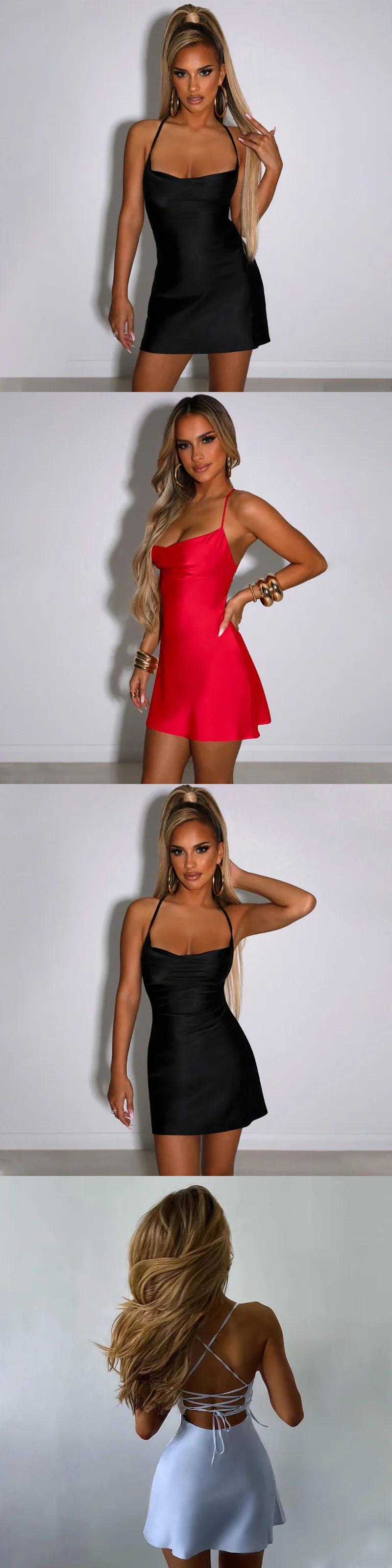 送料無料 セクシーなパーティーミニドレス夏のスリップショートドレス女性ノースリーブ背中の開いた包帯クラブ Y2k 女性 A ラインの服 26018 サマー 夏物 Aライン AE665656612612084625