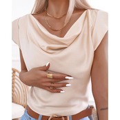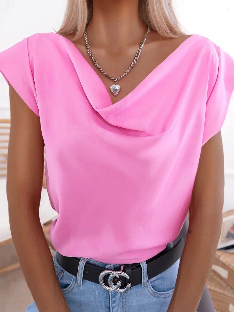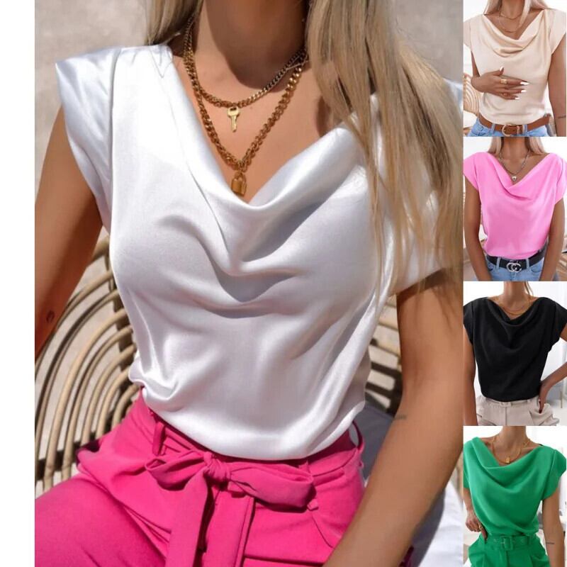 送料無料 2023 夏半袖サテンシャツ女性トップススタイリッシュなパイルカラーブラウス固体 26219 ショート ハーフスリーブ サマー 夏物 ソリッドカラー AE665656660336217648