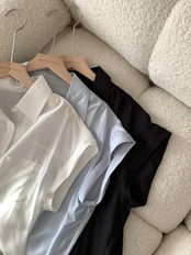 送料無料 夏スタイリッシュなオフィスレディ半袖シャツ女性ブラウス 2023 女性の無地シルク 27532 ショート ハーフスリーブ サマー 夏物 ソリッドカラー 会社 学校 通勤や通学にも AE66565663276970414
