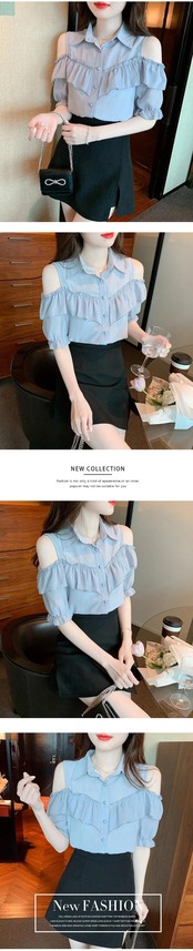 送料無料 夏の女性のシャツオフショルダーシフォンブラウス女性白半袖ボタンアップ 27465 ショート ホワイト ハーフスリーブ サマー 夏物 AE665656627844612371 | 女性の為の通販サイト-fashion navi