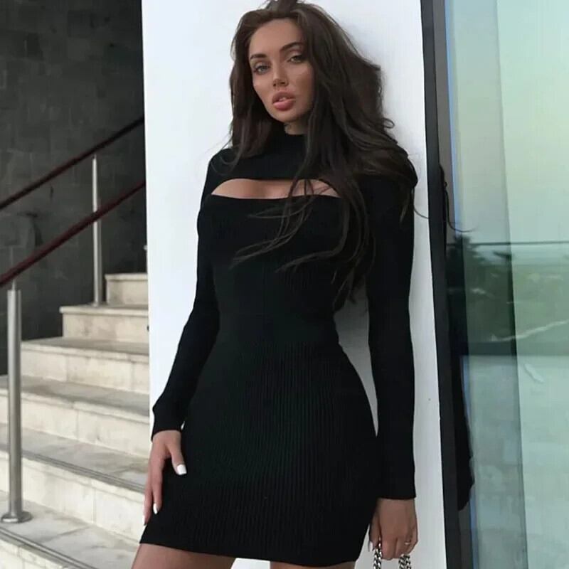 送料無料 2023 スリムウールドレス女性のセクシーなニット長袖中空アウトショートドレス冬のドレス 30173 ロング ウィンター 冬物 AE665656655307850370