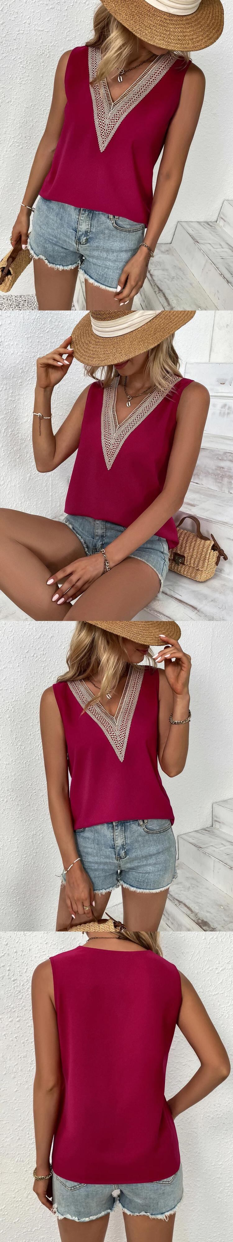 送料無料 2023 夏 V ネックレースルースオフィスレディタンクトップノースリーブブラウス女性シャツシルク服 24880 サマー 夏物 Vネック 会社 学校 通勤や通学にも AE665656681789428963