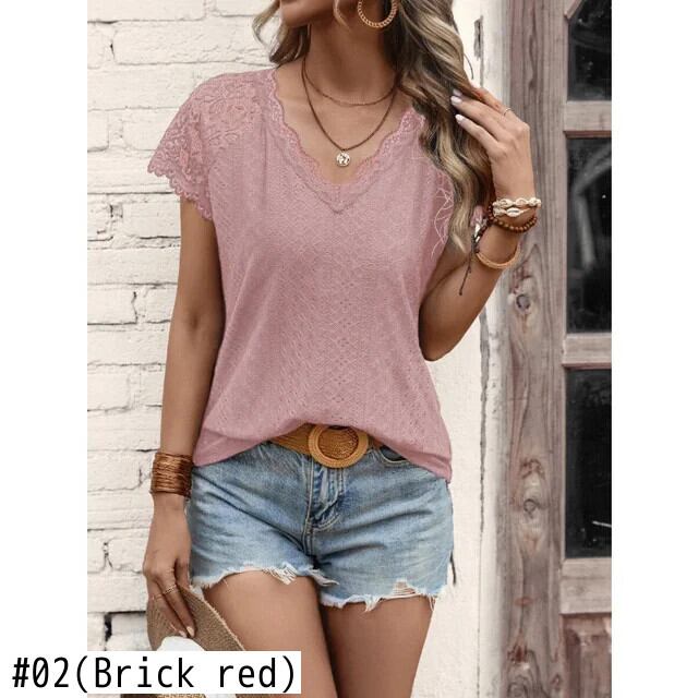 送料無料 夏甘いフックフラワー中空ブラウス V ネック半袖服スプライシングレースシャツ白トップス 25038 ショート ホワイト ハーフスリーブ 大人ガーリー スウィート キュート カジュアル サマー 夏物 Vネック フラワーデザイン AE665656624424064908 | 女性の為の通販サイト-fashion navi