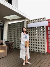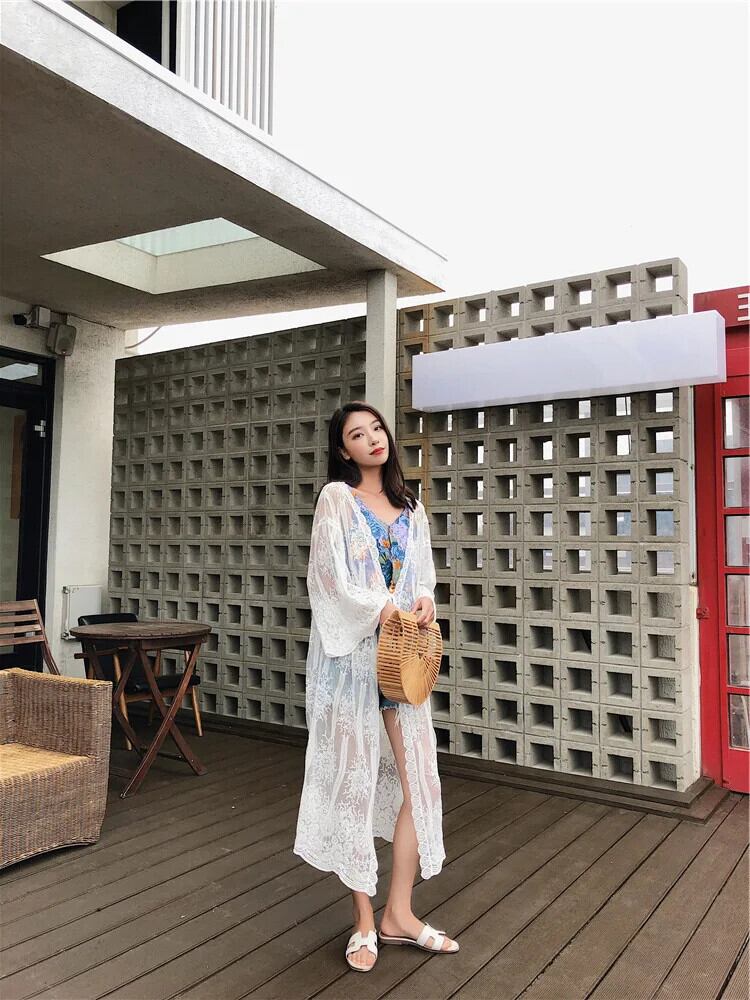 送料無料 ボヘミアン ホリデー ビーチ カバー 日焼け防止フック中空花セクシーなロングシャツ夏のレース ブラウス 25904 サマー 夏物 フラワーデザイン AE665656651227031691