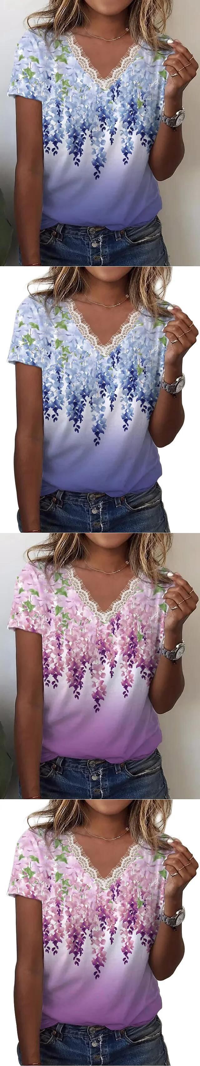 送料無料 夏の女性のフラワープリントブラウスルーズ V ネックレースシャツ半袖トップ春 Tシャツ 26041 ショート ハーフスリーブ スプリング 春物 サマー 夏物 Vネック フラワーデザイン AE665656664651341167 | 女性の為の通販サイト-fashion navi
