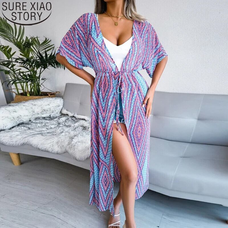 送料無料 レースアップヴィンテージプリントロングシャツカーディガンホリデービーチ日焼け止めシャツ女性の夏半袖日焼け止め 20156 ショート ハーフスリーブ サマー 夏物 ビンテージ AE665656622346481884