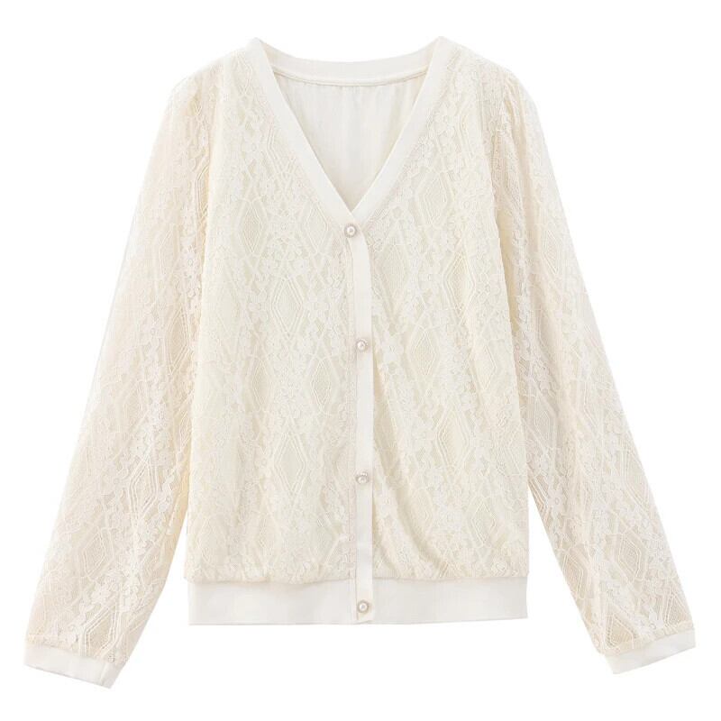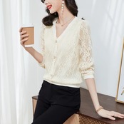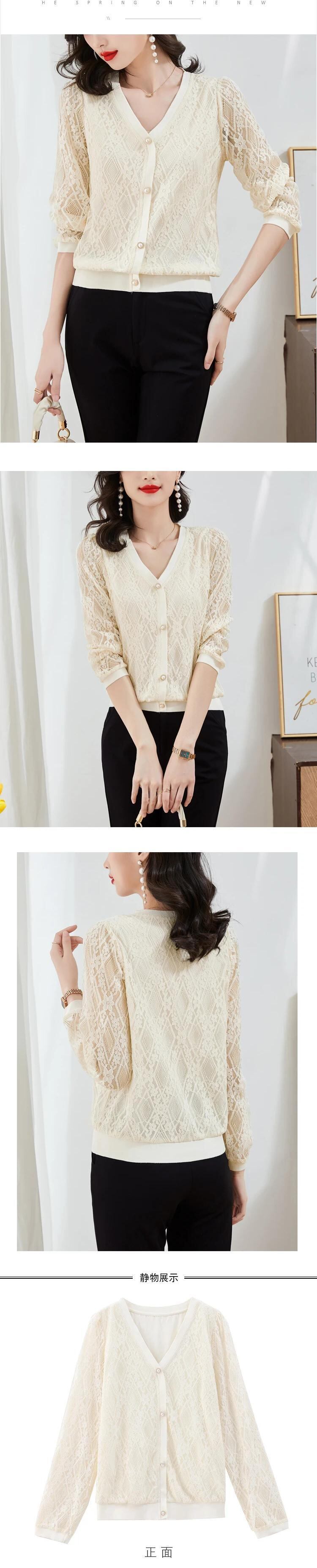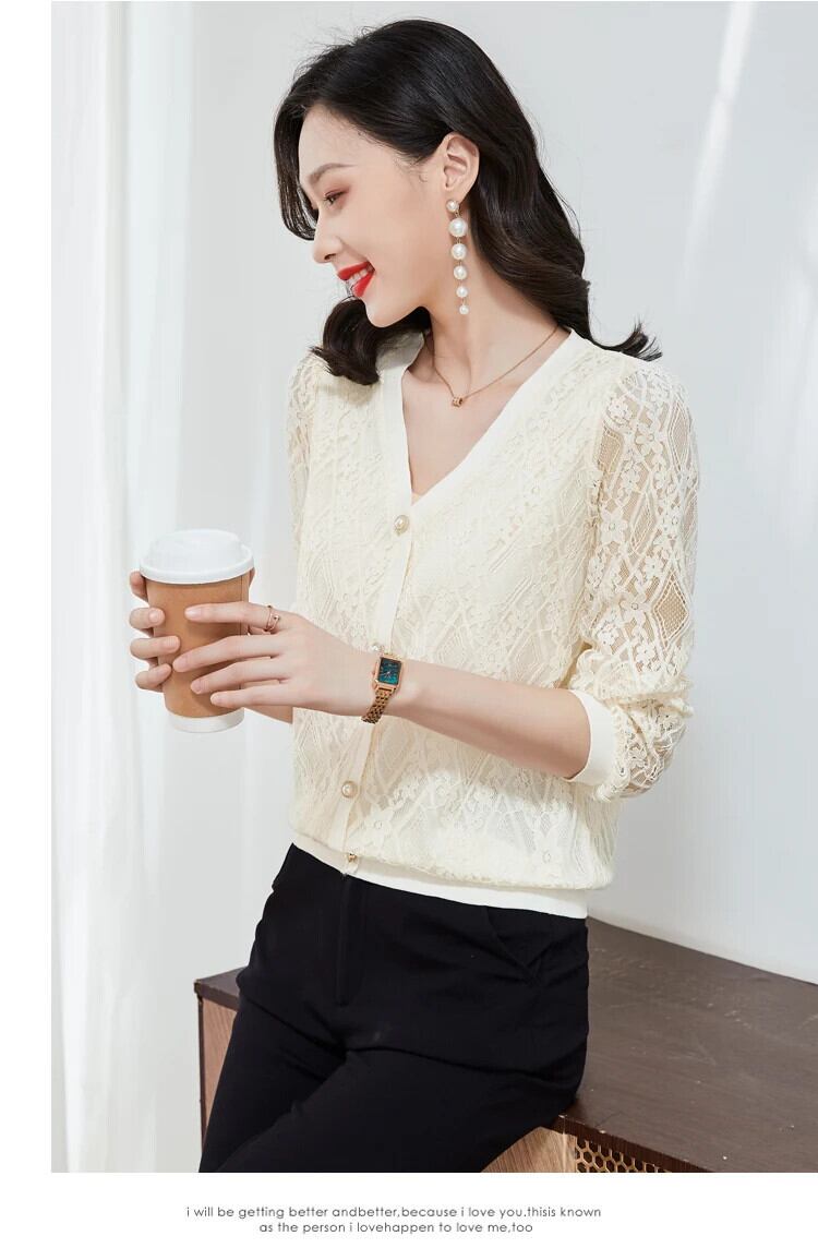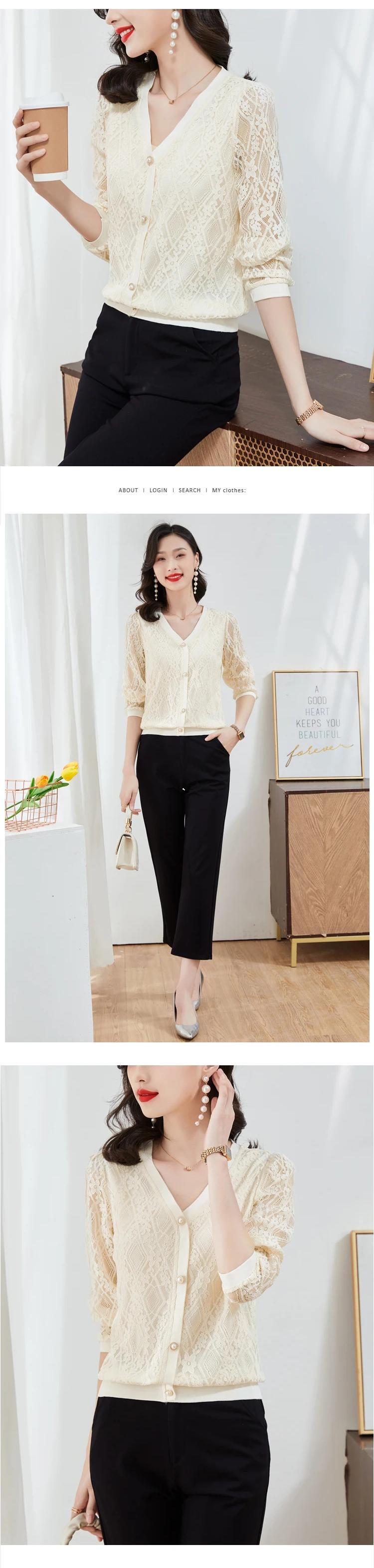 送料無料 レースブラウスオフィスレディ長袖トップス 2023 V ネックニットシャツ女性服 25758 ロング Vネック 会社 学校 通勤や通学にも AE665656668854549661