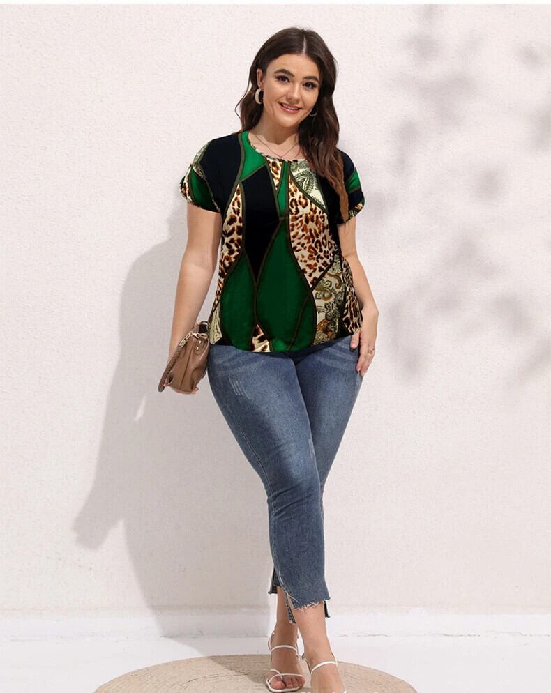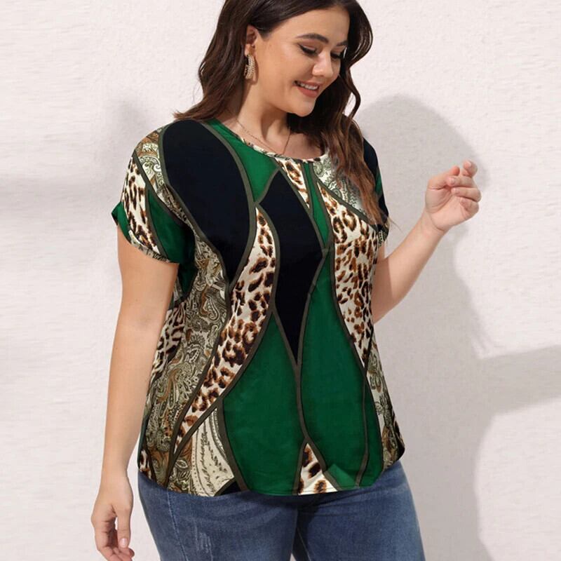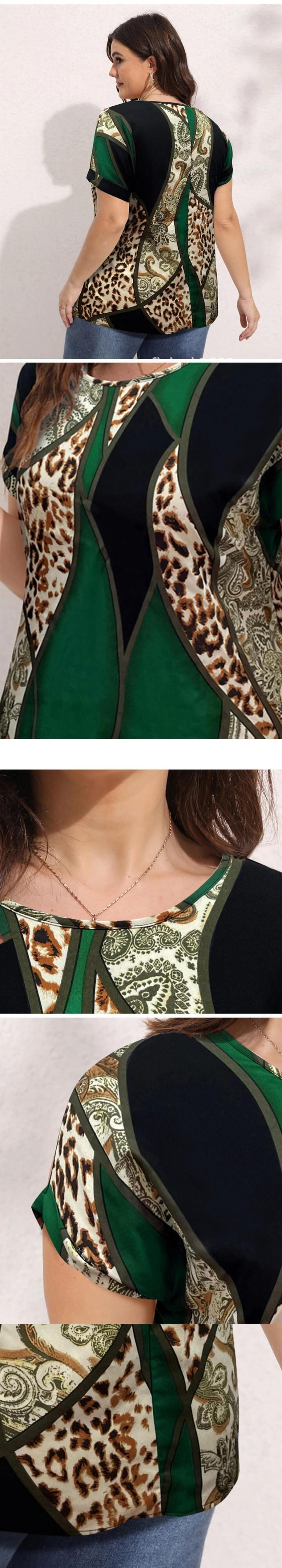 送料無料 2023 夏半袖シャツヒョウ柄ブラウス女性ラウンドカラートップス特大ルーズ服 28085 ショート ハーフスリーブ サマー 夏物 AE665656688973921720
