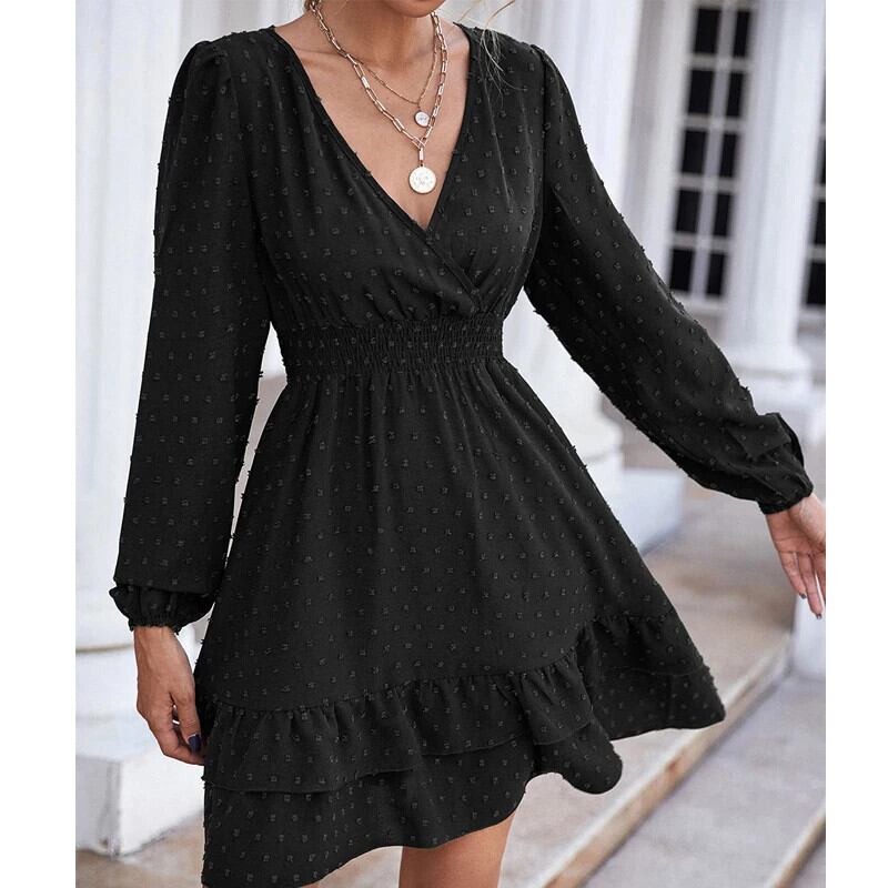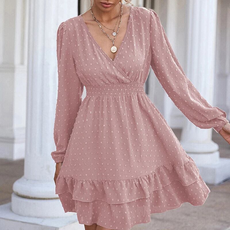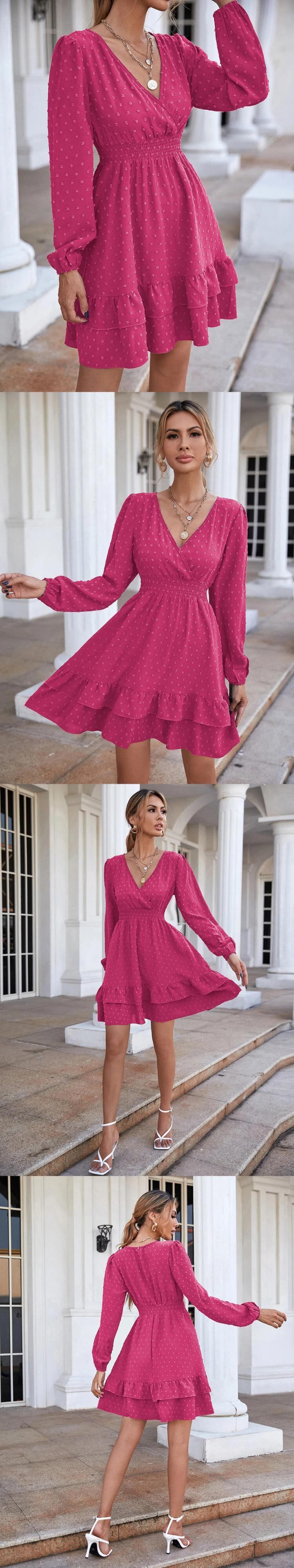 送料無料 ランタンスリーブウエスト A ラインドレス夏ピンク V ネックドレス女性固体フリルドレスローブ 24888 ラッフル サマー 夏物 Vネック Aライン ソリッドカラー AE665656621786413981