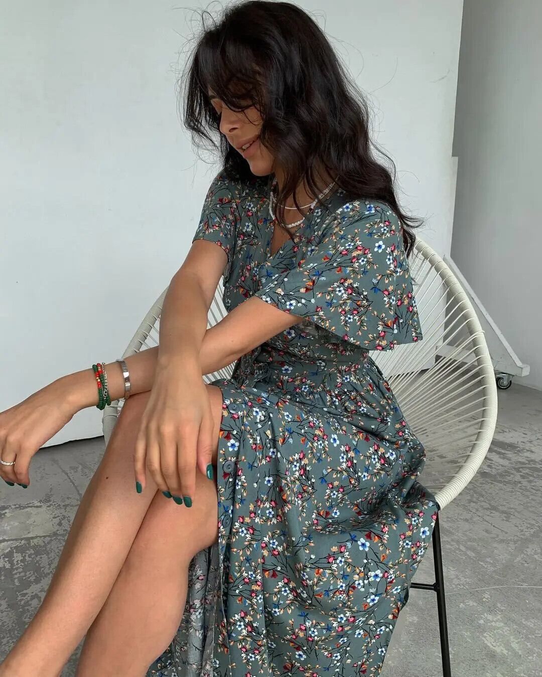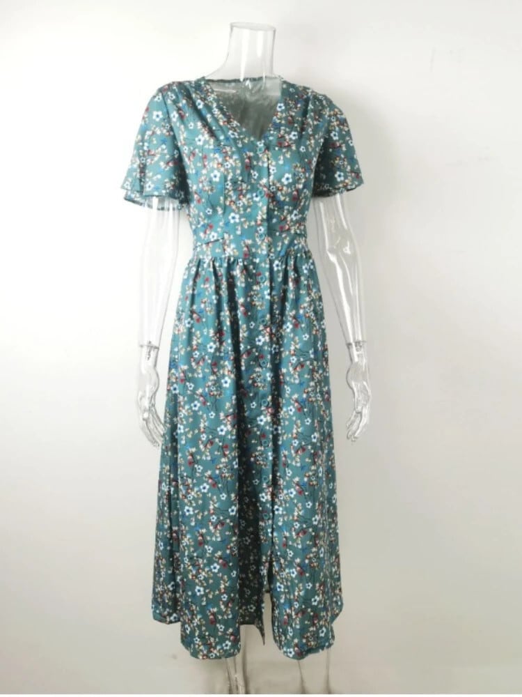 送料無料 2023 フレンチスタイルの女性の夏のフラワープリントドレス V ネックレースアップサンドレス半袖 Vestidos 28113 ショート ハーフスリーブ サマー 夏物 Vネック フラワーデザイン AE66565667383430354