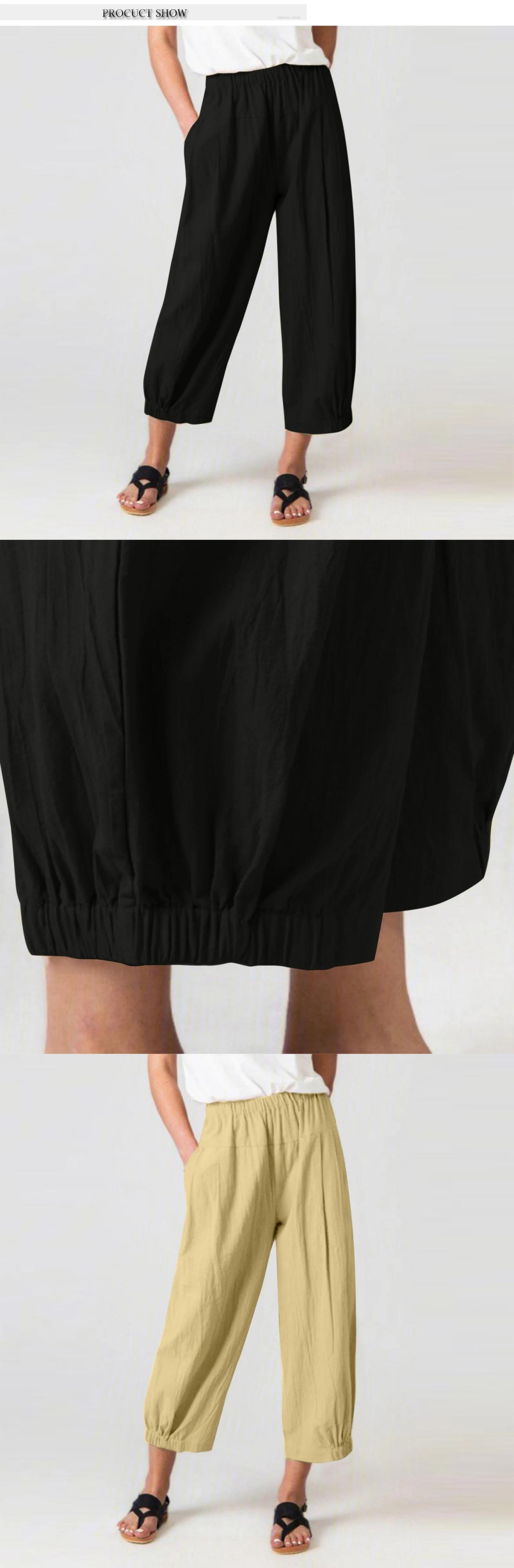 送料無料 ソリッドウエストワイドレッグパンツカーキカラーコットンリネンルーズクロップドパンツ夏だぶだぶの Pantalones 25552 サマー 夏物 ワイドパンツ ソリッドカラー AE665656684060638703