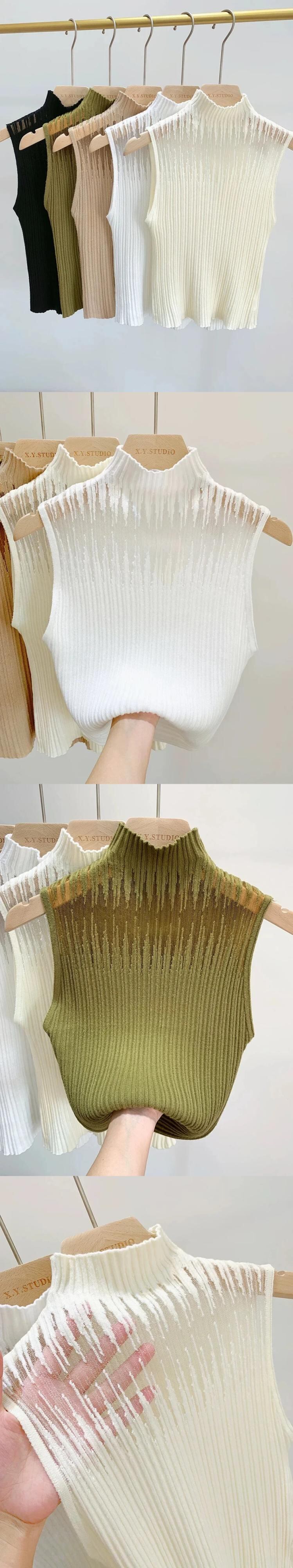送料無料 ノースリーブ薄いブラウス女性中空アウトセクシーなタンクトップ 2023 ショートトップスリム春と夏 25242 スプリング 春物 サマー 夏物 AE665656624196906637