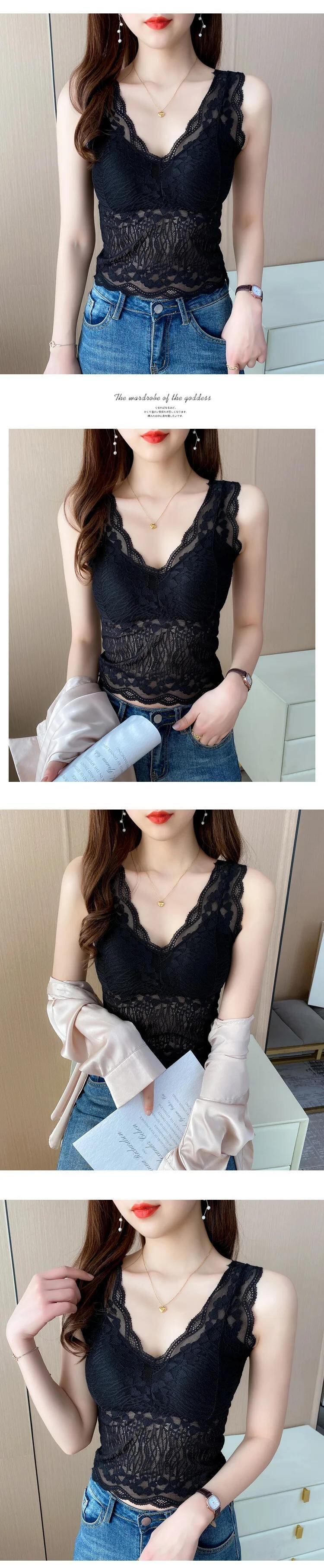 送料無料 2023 夏のレースのセクシーなノースリーブショートブラウス女性 V ネックスリムフィット固体シャツシースルーブラッククロップトップ 25452 サマー 夏物 Vネック ソリッドカラー AE66565667107397193