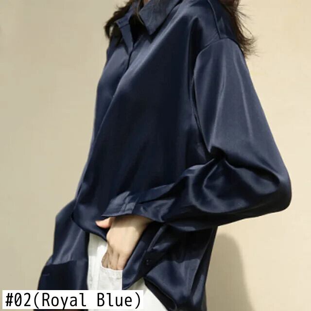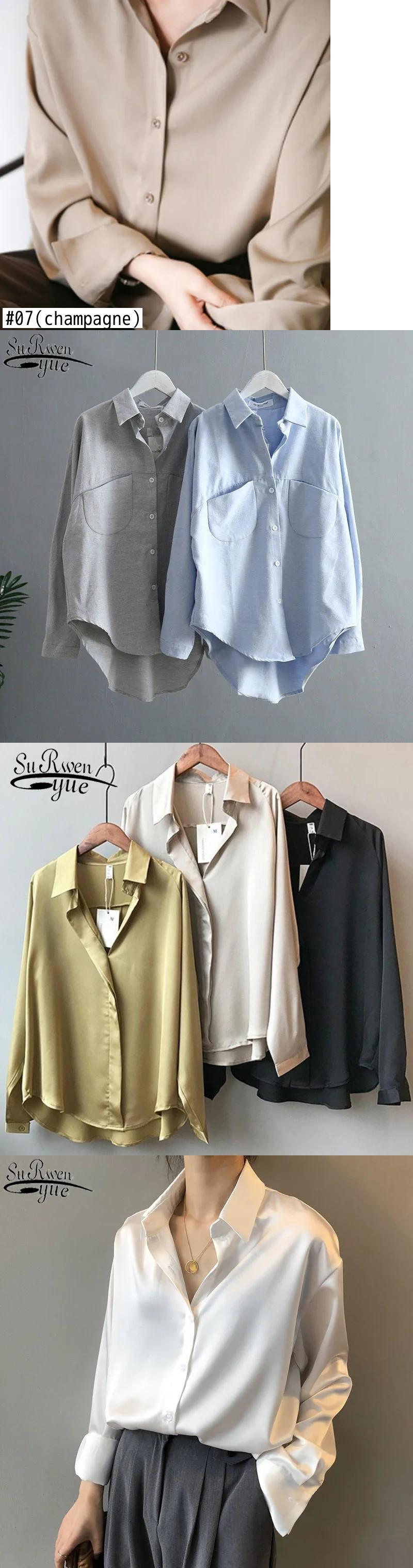 送料無料 秋のボタンアップサテンシルクシャツヴィンテージブラウス女性ホワイトレディ長袖ルーズストリートシャツ 11355 ロング オータム 秋物 ビンテージ AE665656670782464074