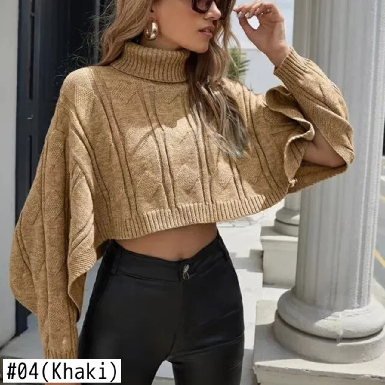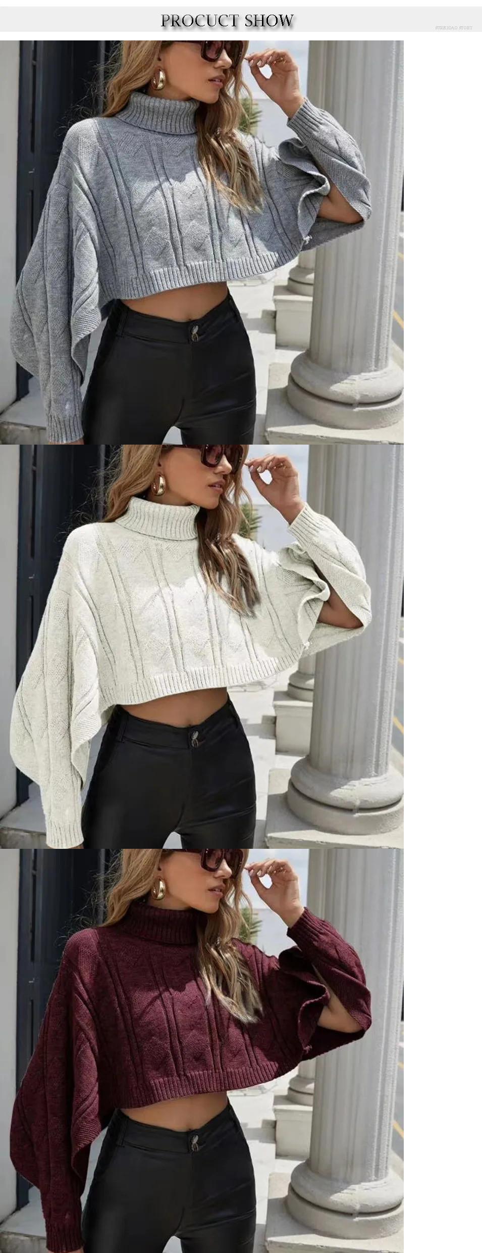 送料無料 女性バットウィングスリーブタートルネックプルオーバーショートセーター秋ストリートニット作物セーター Y2K 女性冬 28536 オータム 秋物 ウィンター 冬物 AE665656655023625652