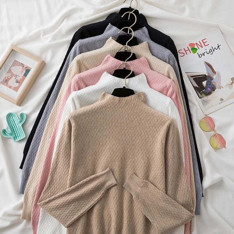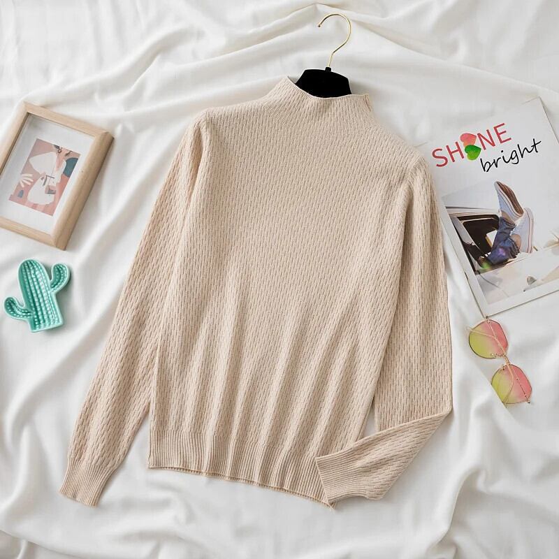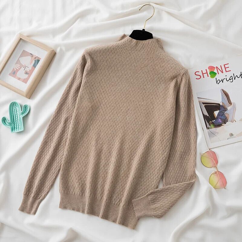 送料無料 ハーフタートルネック長袖プルオーバー女性のセーター 2023 秋冬固体ニットジャンパートップス 28734 ロング オータム 秋物 ウィンター 冬物 ソリッドカラー AE665656674558404190