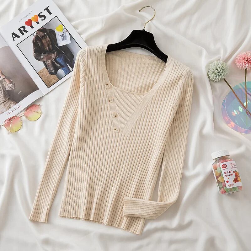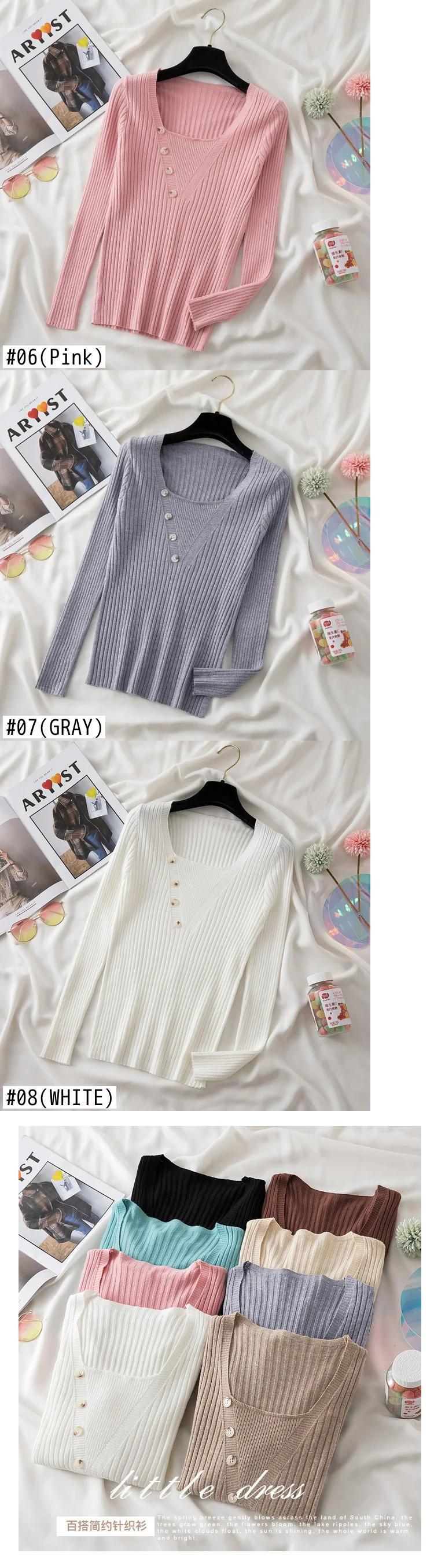 送料無料 秋スリム長袖女性のプルオーバーセータースクエアネックボタンニットトップス 2023 固体ジャンパー 28731 ロング オータム 秋物 ソリッドカラー スクウェア AE66565667215571562