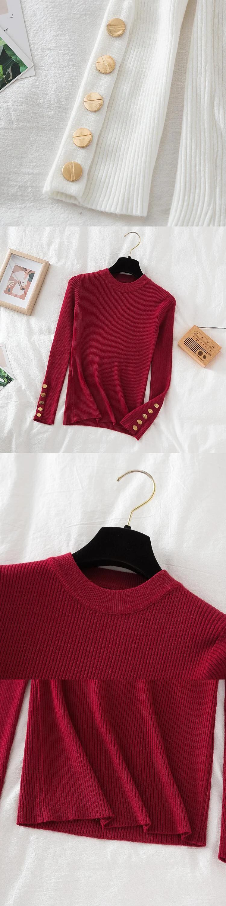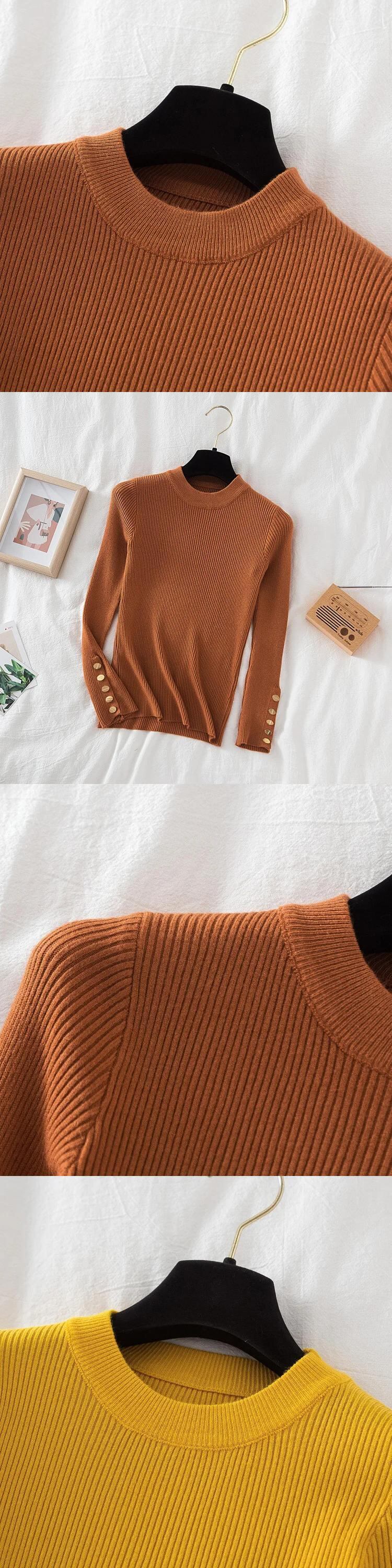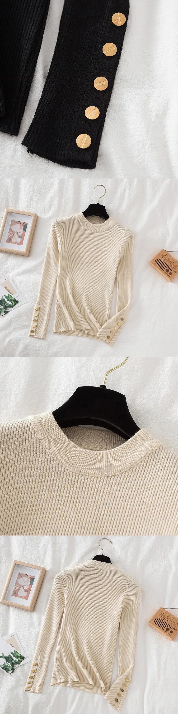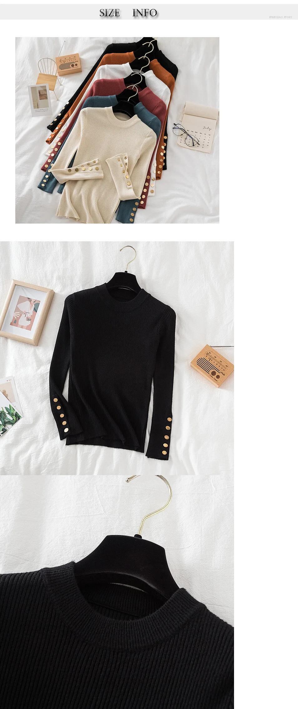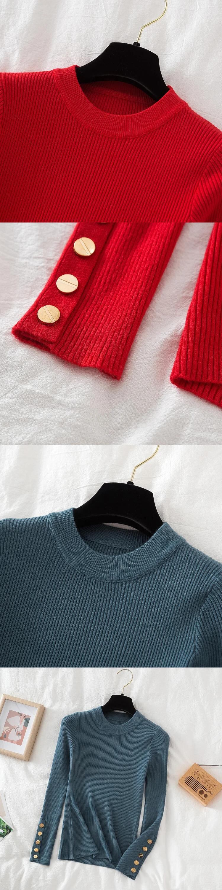 送料無料 秋の半襟プルオーバー女性セーター冬ボタン長袖トップススリムフィットニット服 28280 ロング オータム 秋物 ウィンター 冬物 AE665656663513641170