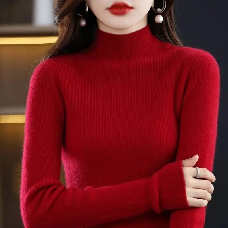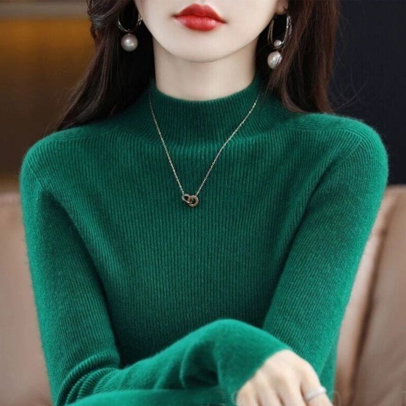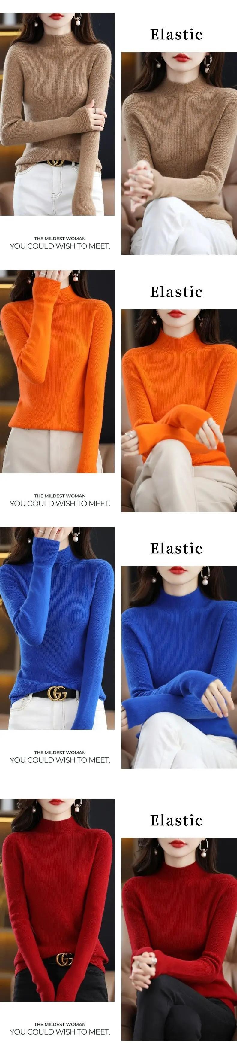 送料無料 2023 秋冬ボトムニット長袖トップスハーフタートルネックニットプルオーバーセーター女性ジャンパーセーター 28500 ロング オータム 秋物 ウィンター 冬物 AE665656664638594691