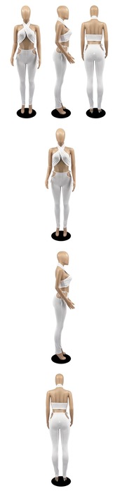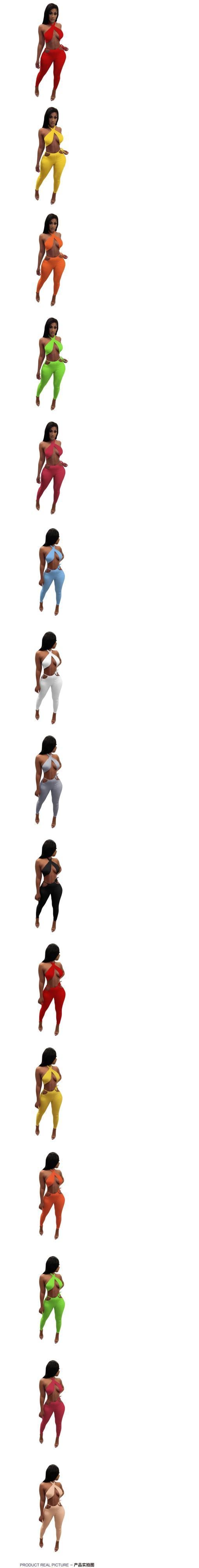 送料無料 Y2k セクシーなクロスホルタークロップトップスとスキニーロングパンツツーピースセットパーティークラブ女性包帯カットアウト衣装服 25426 AE665656655009789154
