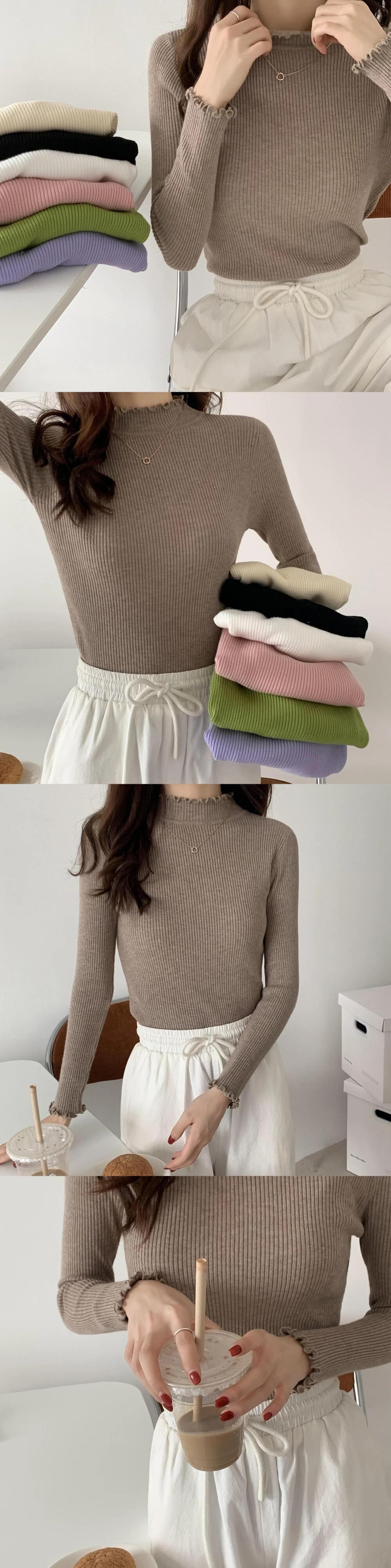 送料無料 女性ボトリングセーター秋と冬ニットハーフタートルネックシャーリングプリーツスリムトップスソフトフル 17535 オータム 秋物 ウィンター 冬物 AE665656696664993906