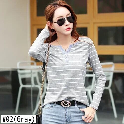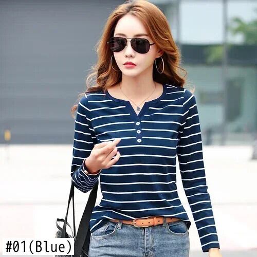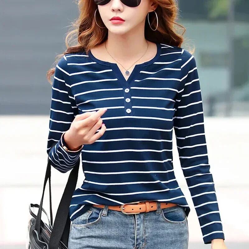 送料無料 SURWENYUE 秋 2024 長袖 Tシャツ綿トップスストライプ Tシャツ女性春服女性 V ネック Tシャツ 7215 ロング コットン スプリング 春物 オータム 秋物 Vネック AE665656621722321468