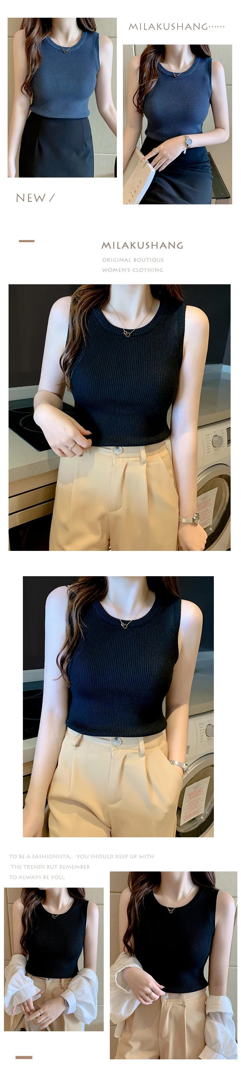 送料無料 女性白スリムブラウスノースリーブ夏ニットタンクトップ固体 O ネッククロップドオフィスレディ女性シャツ 27857 ホワイト サマー 夏物 Oネック ソリッドカラー 会社 学校 通勤や通学にも AE665656641363680983