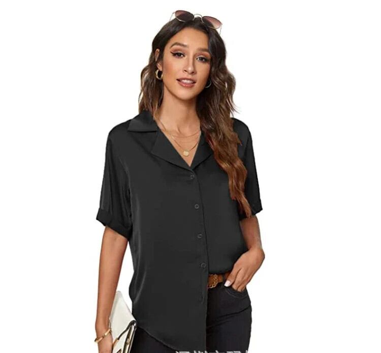 送料無料 2024 夏半袖サテン女性シャツボタンアップシルクトップオフィスレディルーズスタイリッシュなブラウス 19931 ショート ハーフスリーブ サマー 夏物 会社 学校 通勤や通学にも AE665656660976330765