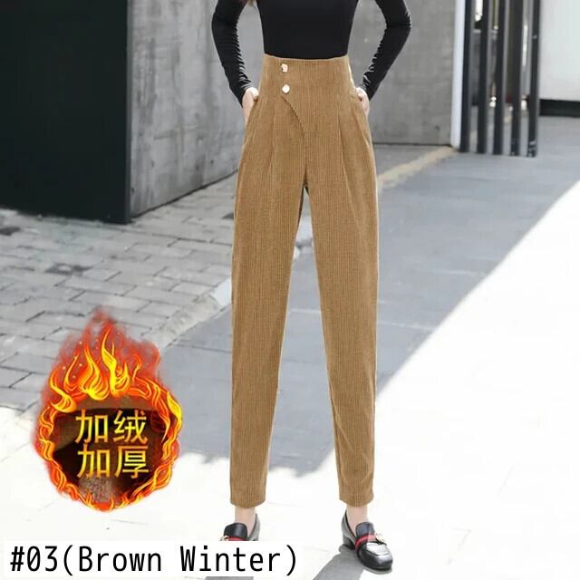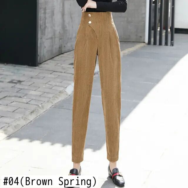 送料無料 コーデュロイパンツの女性のズボンの気質オールマッチ 2022 春秋のウエストハーレムパンツキャロットパンツ スプリング 春物 オータム 秋物 AE776767782819739758