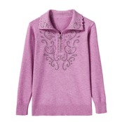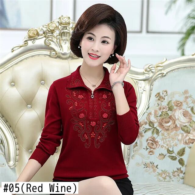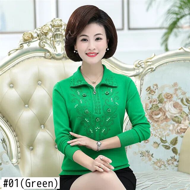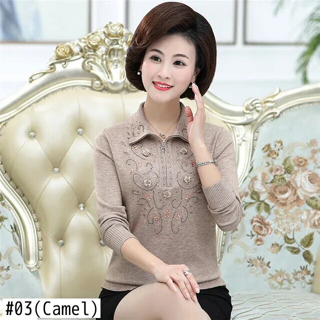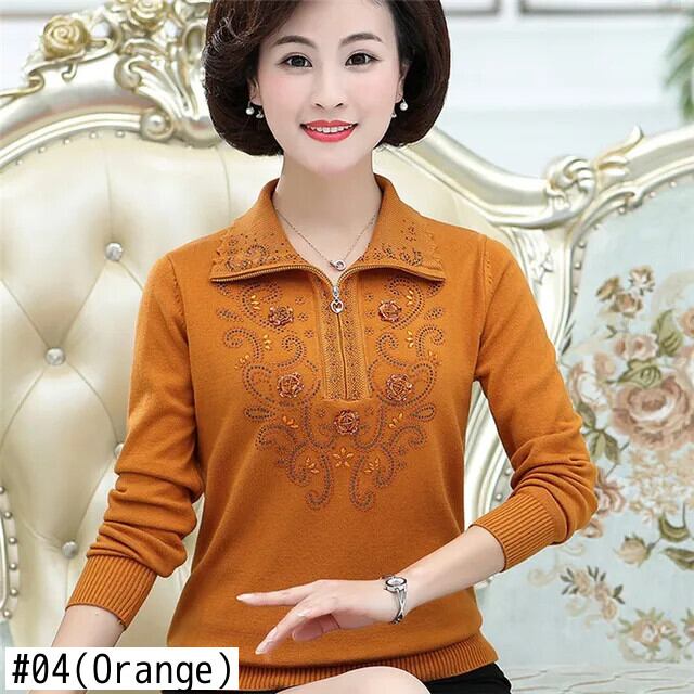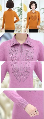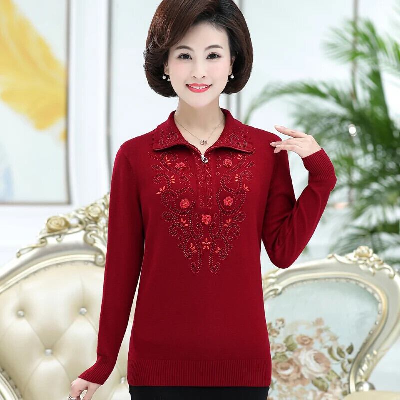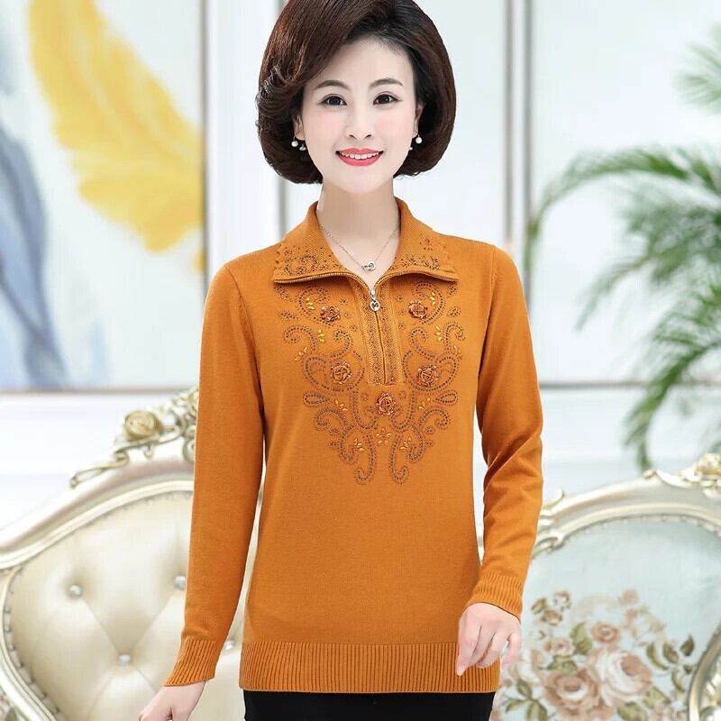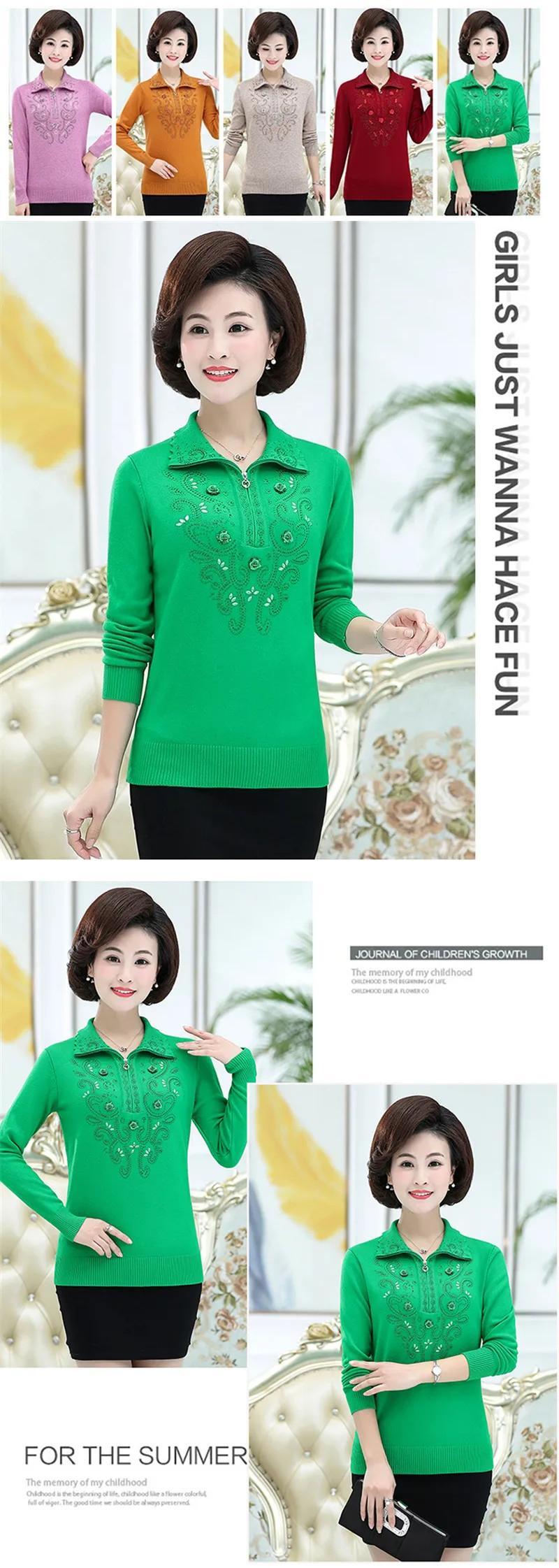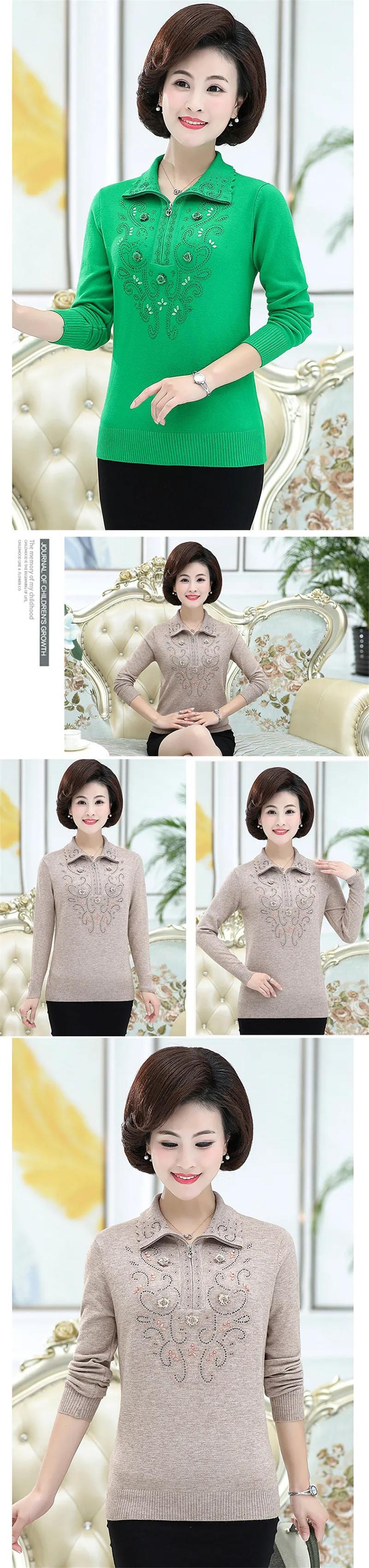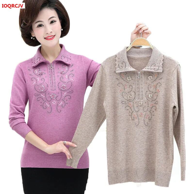送料無料 大サイズ中年女性のプルオーバーセーター秋冬長袖ラペルジッパーニットトップスセーターコート W1714 ロング 大きめサイズ オータム 秋物 ウィンター 冬物 AE776767783762281790