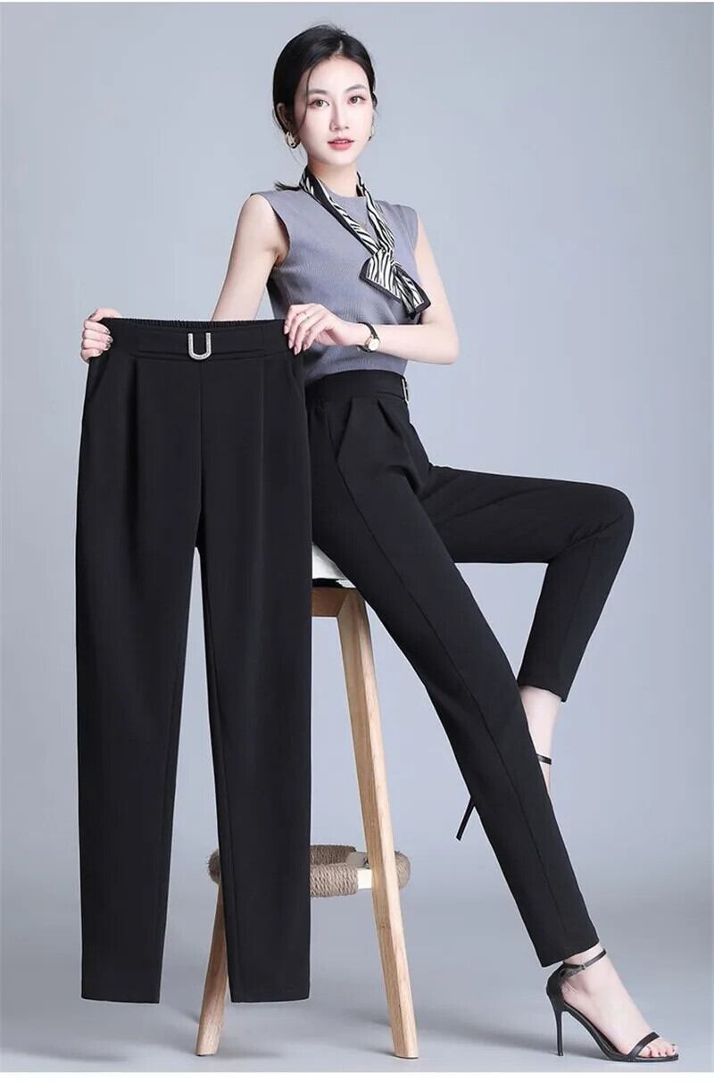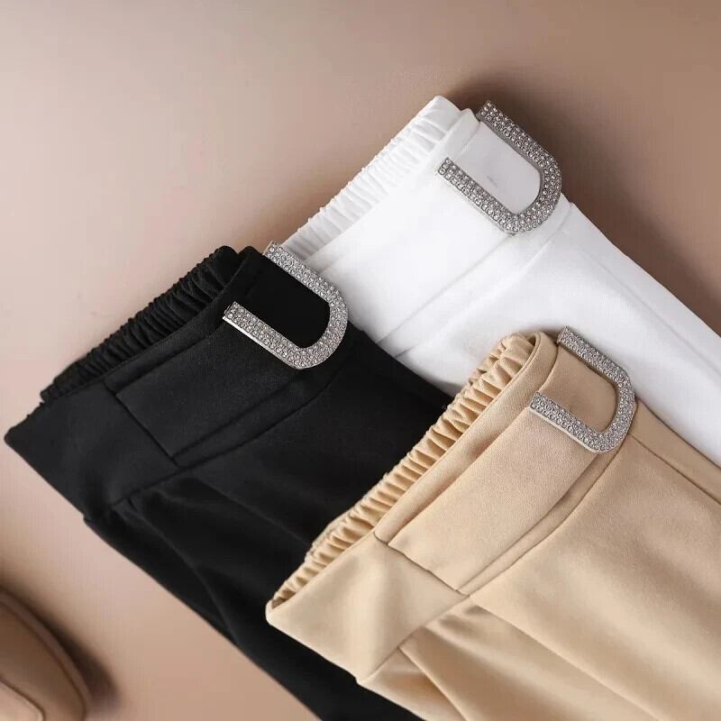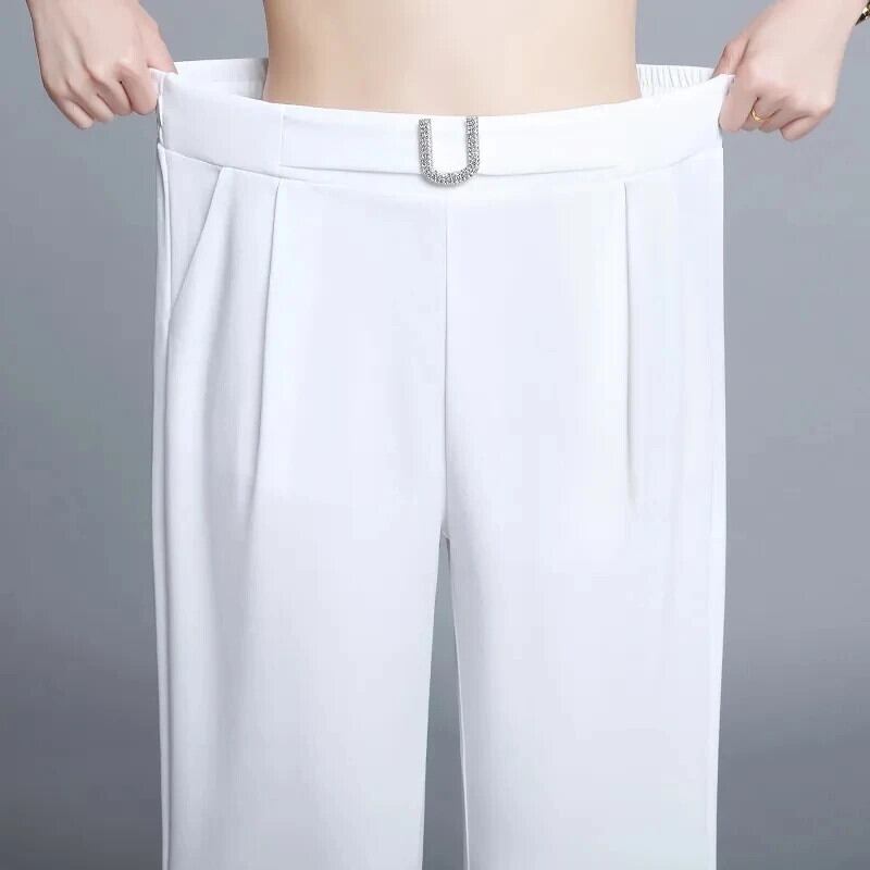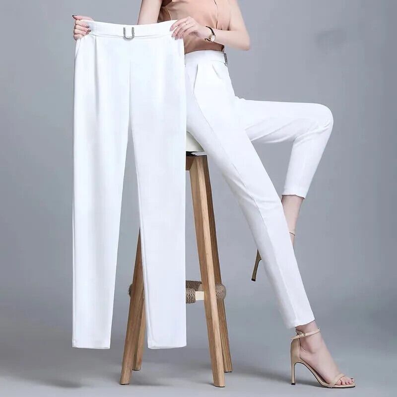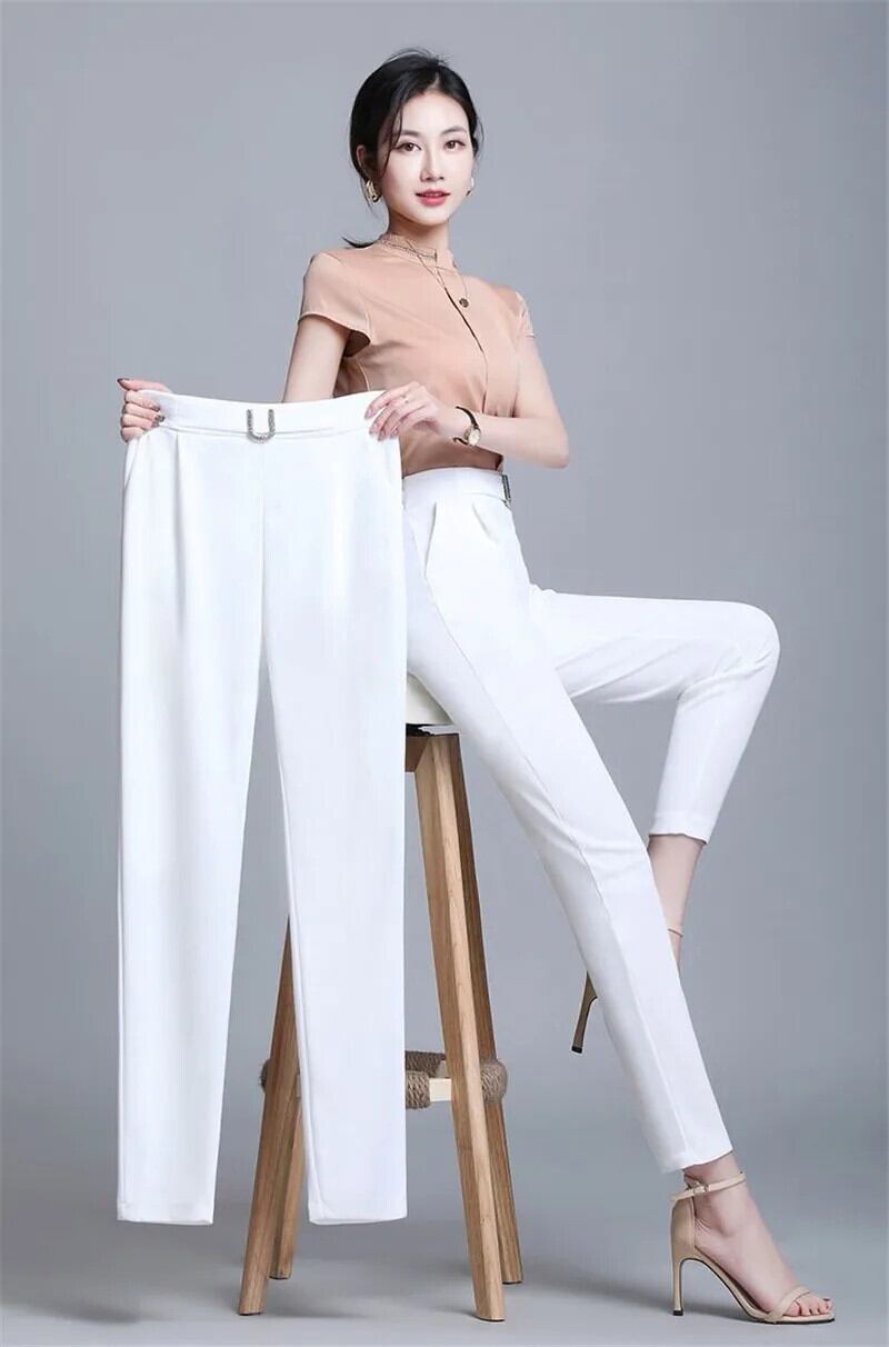 送料無料 ホワイトパンツ女性弾性ウエストストレートパンツワイルドプロフェッショナル薄型スーツパンツオフィスパンツブラックカーキパンツ エラスティック 伸縮 会社 学校 通勤や通学にも AE776767711443928051