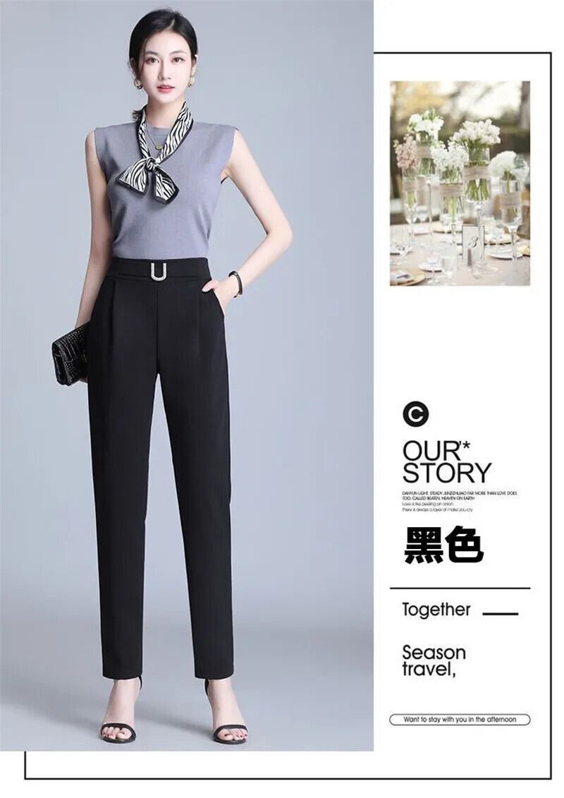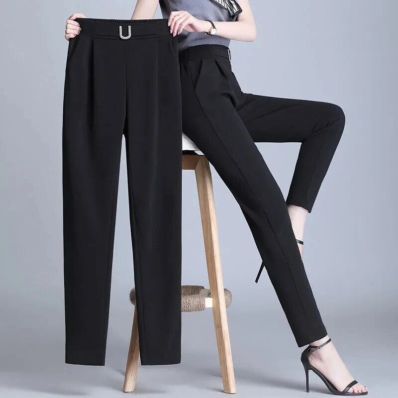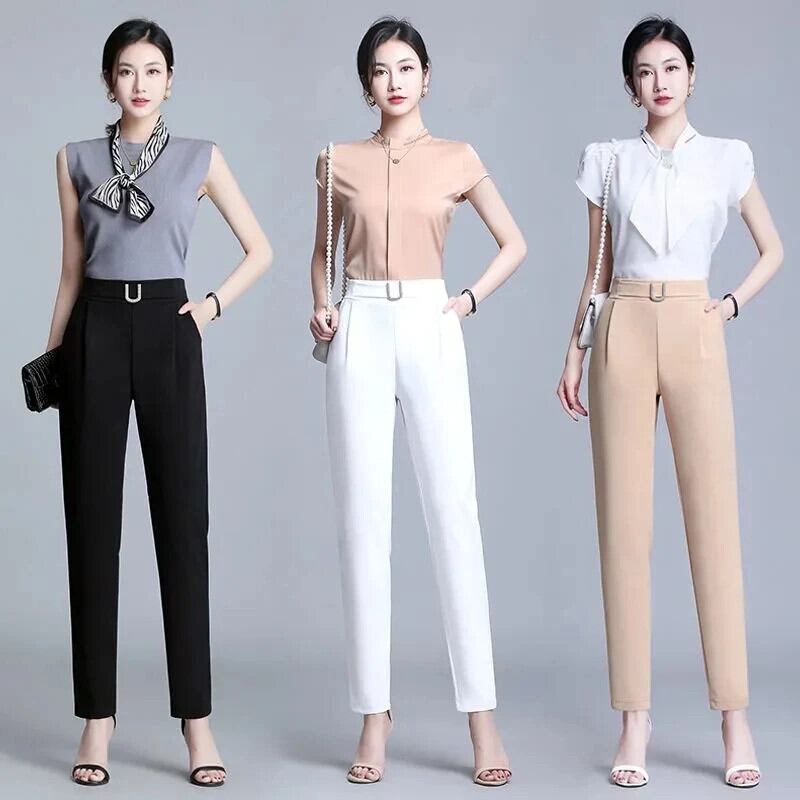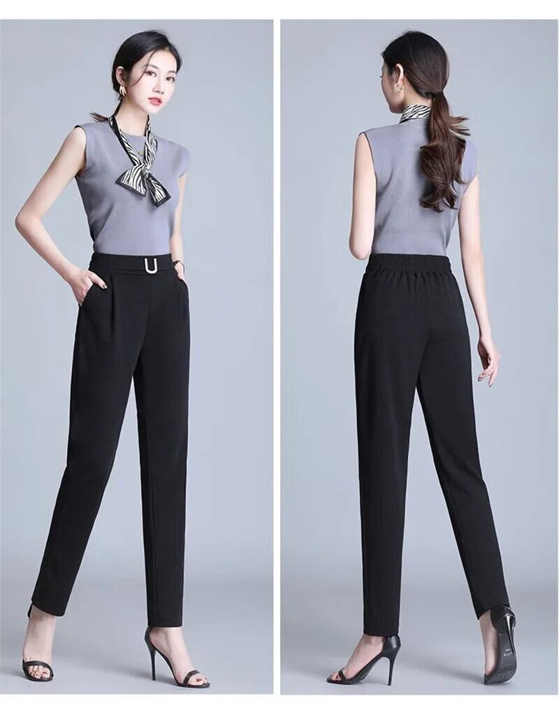 送料無料 ホワイトパンツ女性弾性ウエストストレートパンツワイルドプロフェッショナル薄型スーツパンツオフィスパンツブラックカーキパンツ エラスティック 伸縮 会社 学校 通勤や通学にも AE776767711443928051