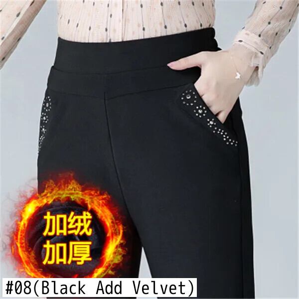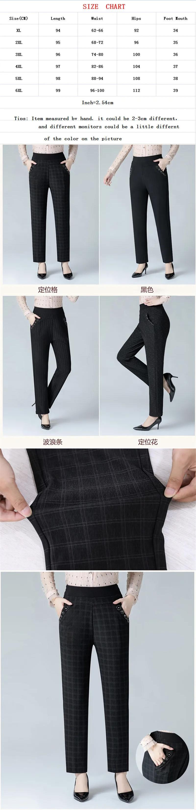 送料無料 女性の冬暖かいチェック柄パンツウエストストリート全身ベルベットストレートパンツ母 6XL W1781 ウィンター 冬物 AE776767760610279981