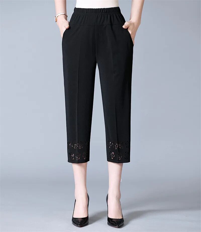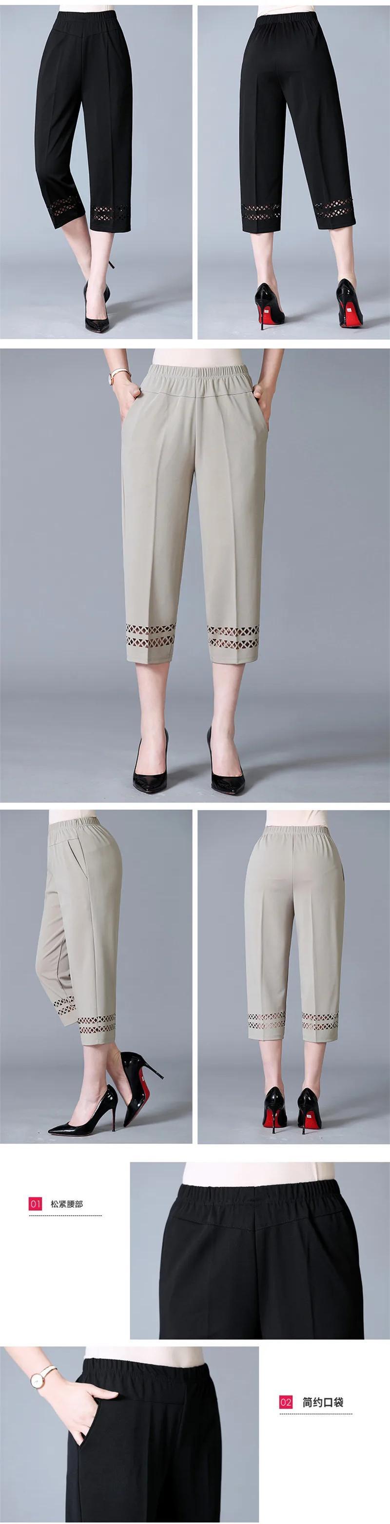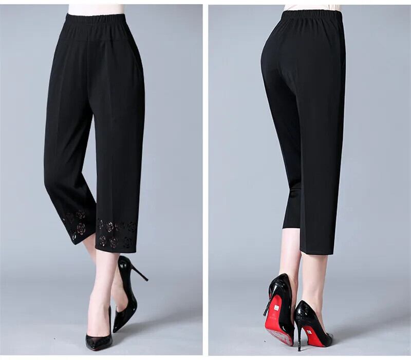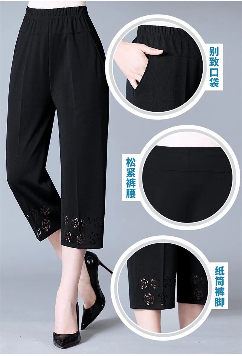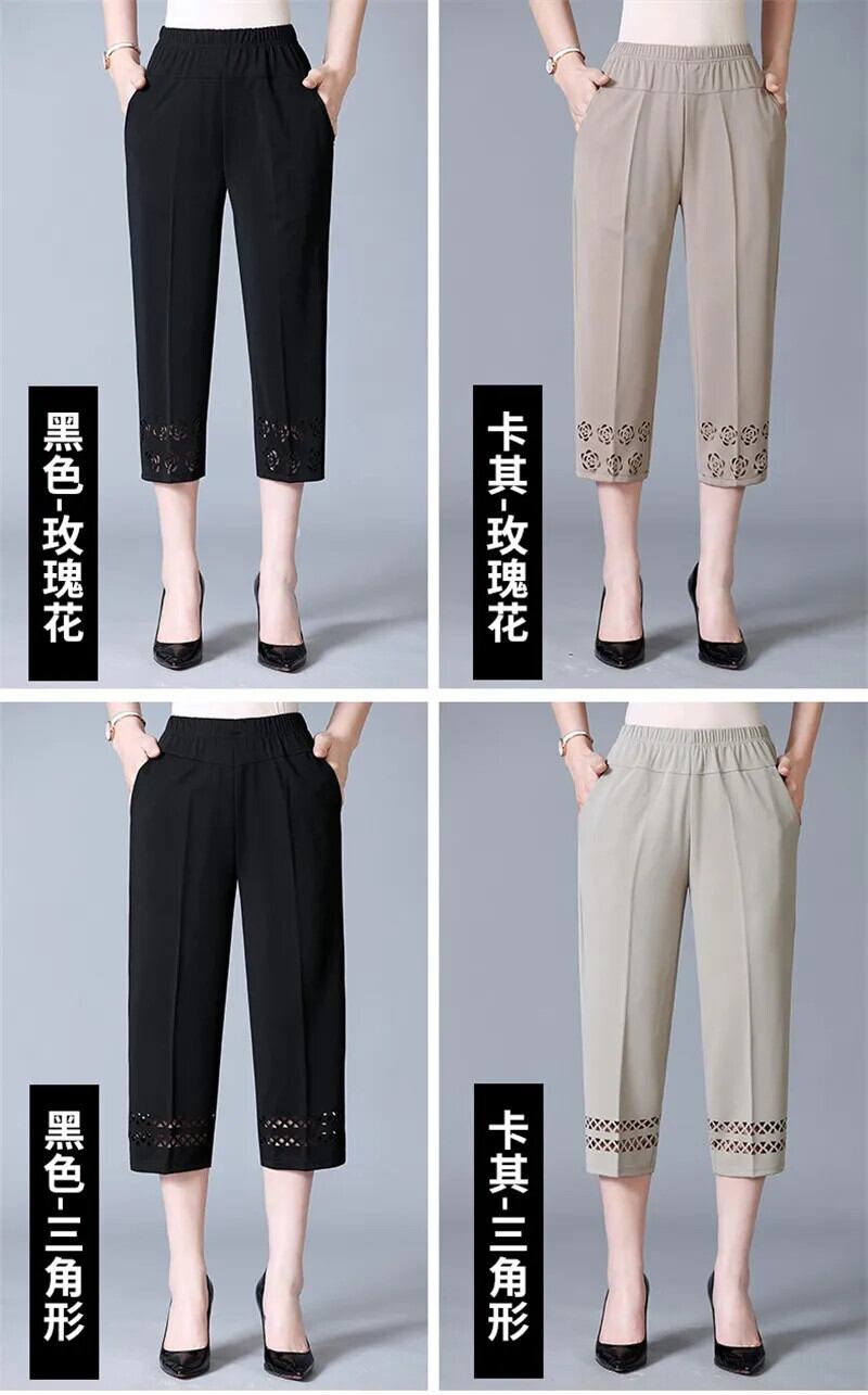 送料無料 中高年女性のサマーパンツ薄い弾性ウエストルーズクロップドパンツXL-5XLマザーパンツW1887 エラスティック 伸縮 夏物 AE776767749435998634