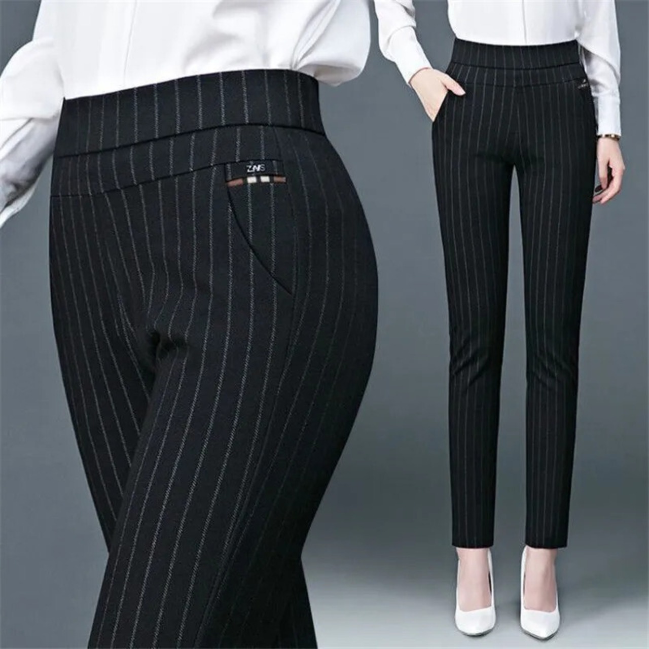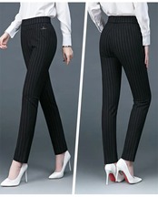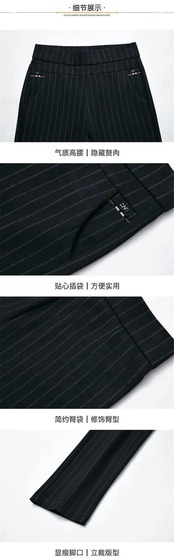送料無料 秋の女性のパンツウエスト弾性中年母ストレッチストレートパンツ女性の夏の薄いストライプのズボン エラスティック 伸縮 サマー 夏物 オータム 秋物 AE776767729312459882