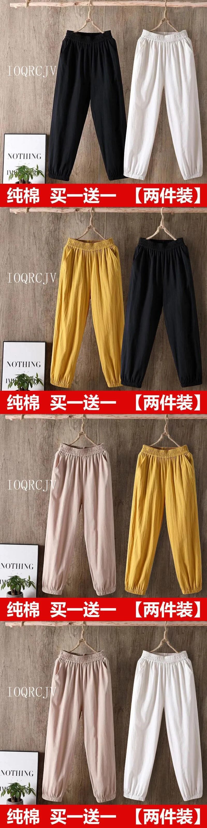 送料無料 女性パンツ春秋足首丈固体弾性ウエスト女の子パンツ夏薄い綿リネンハーレムズボン 4XL コットン エラスティック 伸縮 スプリング 春物 サマー 夏物 オータム 秋物 ソリッドカラー AE776767721009398099