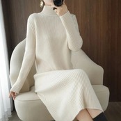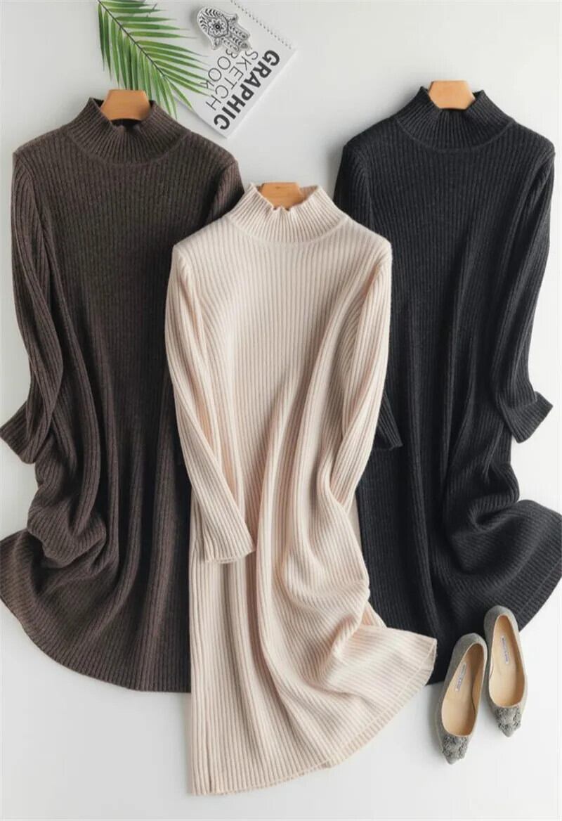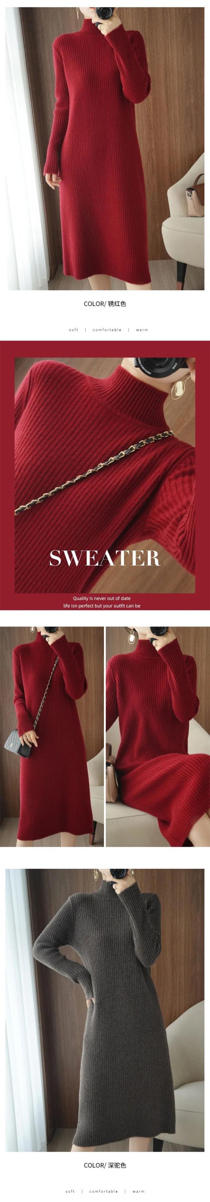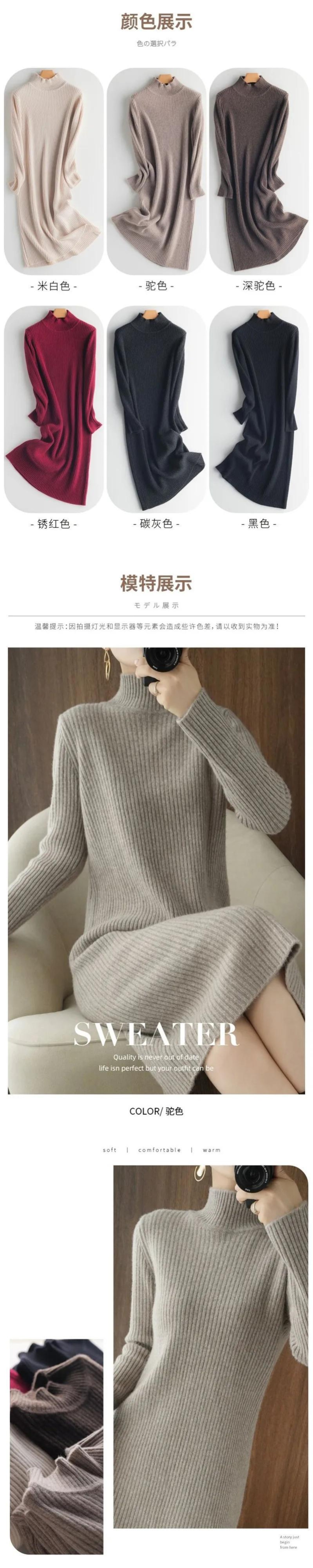 送料無料 女性秋冬セーターニットドレススリム弾性ハーフタートルネックプルオーバージャンパーセクシーなシックな女性ロングセーター Vestidos エラスティック 伸縮 オータム 秋物 ウィンター 冬物 AE776767721239258768