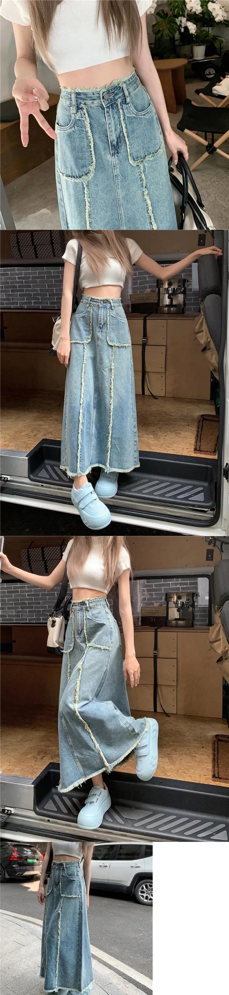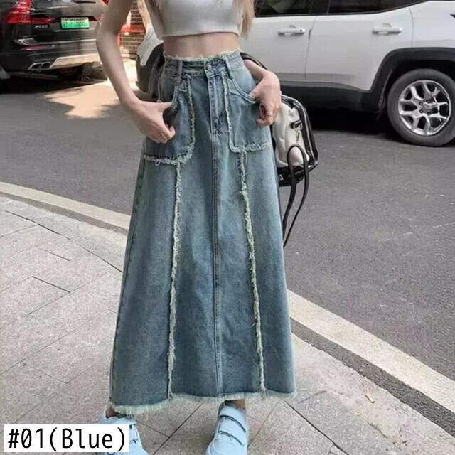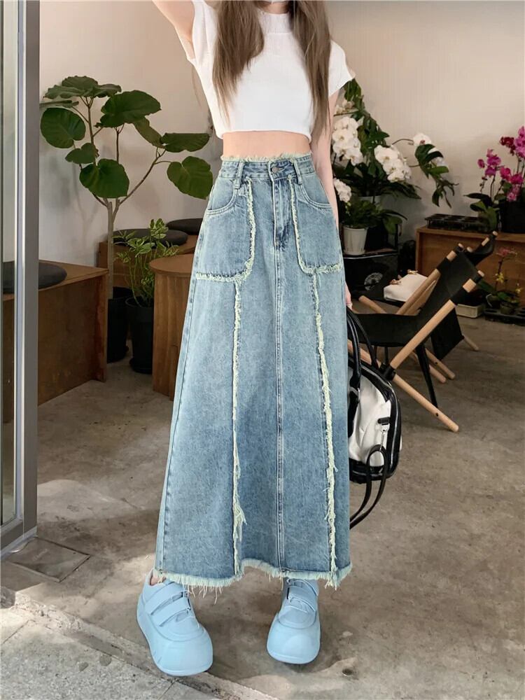 送料無料 Damen ジーンズ ロッケ サマー モード レトロ レッシグ A-Linie オールマッチ ストリートウェア ソリッド ヴィエルセイティゲ ベケメ Tasche Gesäß Rock ソリッドカラー AE55455465417292694
