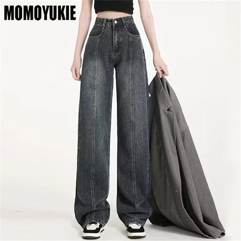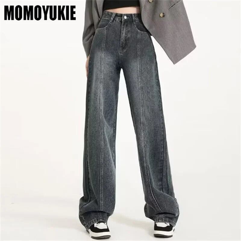 送料無料 Damen ジーンズ mit weitem Bein 2024 Herbst americanischer Stil hoch taillierte、locker sitzende Vintage-Hose mit geradem Bein und neuem Stil ビンテージ AE55455464888902213