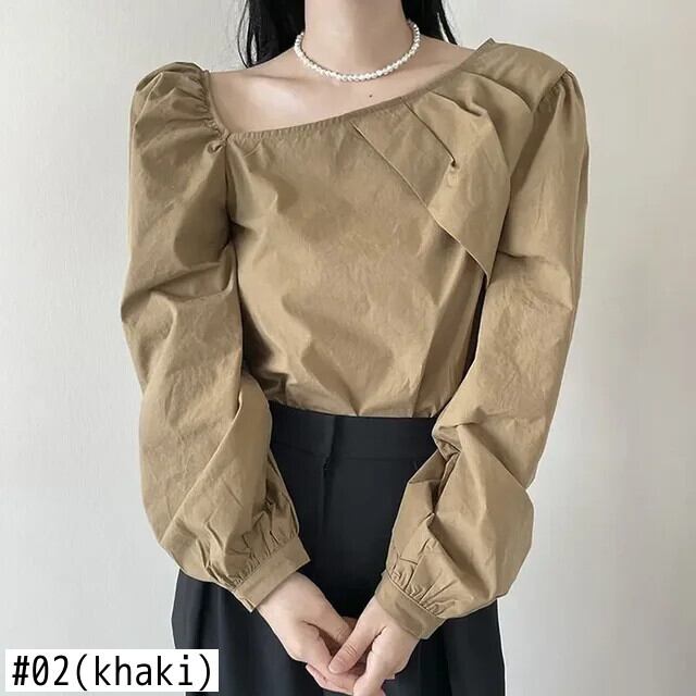 送料無料 ische Frühling Vintage Verwestlichte Einfarbig Unregelmäßigen Ausschnitt Plissee Entspannt Sanfte Blase Hülse Hemd Frauen ビンテージ AE5545547063204908