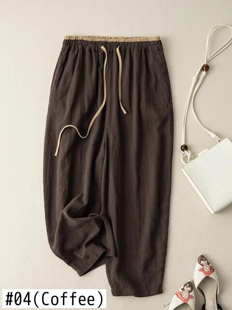 送料無料 Damen ホース 2024 Sommer neue レトロ ロス ハーレム ホース elastische Kordel zug Taille Freizeit ホース Basic weit geschnittene knöchel lange ホース AE55455422108702022