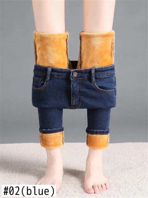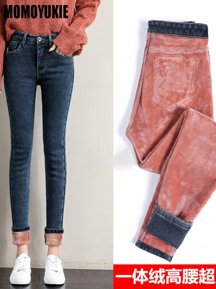 送料無料 2022 neue frauen Herbst Winter freizeit Plus Samt Verdickt Dünne ジーンズ Hohe Taille Dünne TightElastic Warme Bleistift gerade ホース エラスティック 伸縮 ウィンター 冬物 AE55455420209509326