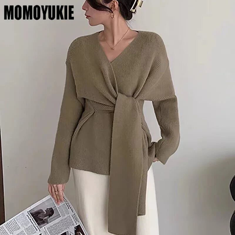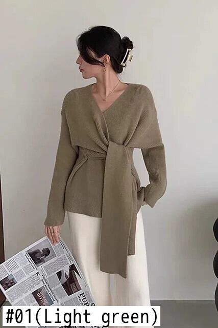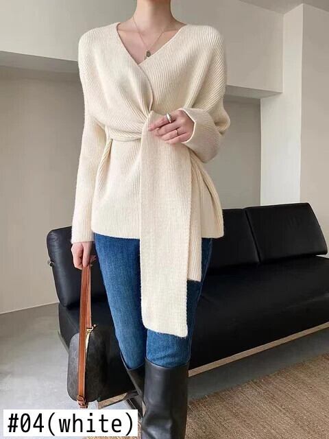 送料無料 2024 Herbst Winter neue vielseitige Leerlauf Stil gestrickt Top V-Ausschnitt Taille tailliert プルオーバー Sensibilität Cross-Boundingelegante プルオーバー エレガント ウィンター 冬物 AE55455483142342571