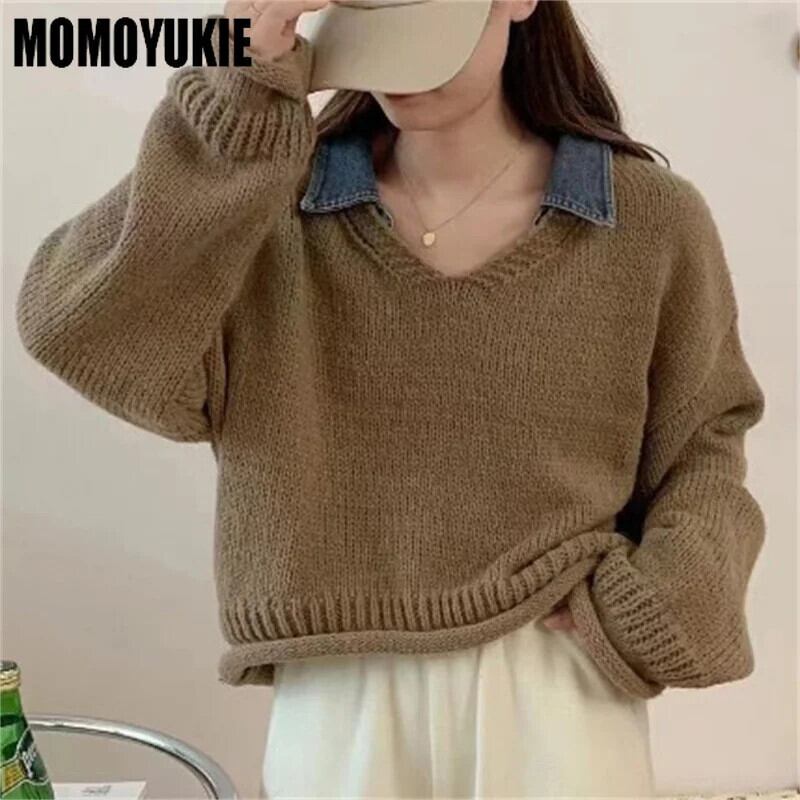 送料無料 2024 Herbst 冬 gespleißt ストリートウェア 韓国ペンデルス til einfache stilvolle verkürzte Freizeit Temperament neue Frauen プルオーバー ウィンター 冬物 AE55455433458106804