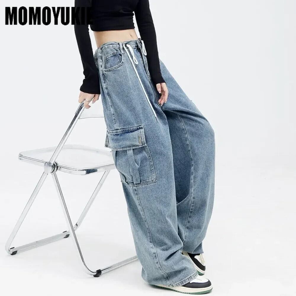 送料無料 2022 neue Herbst ヴィンテージ Freizeit Hohe Taille ジーンズ Gerade Breite Bein カーゴ ジーンズ フラウエン ストリート ローズ カーゴ ジーンズ フラウエン ダー ビンテージ AE55455411945782992